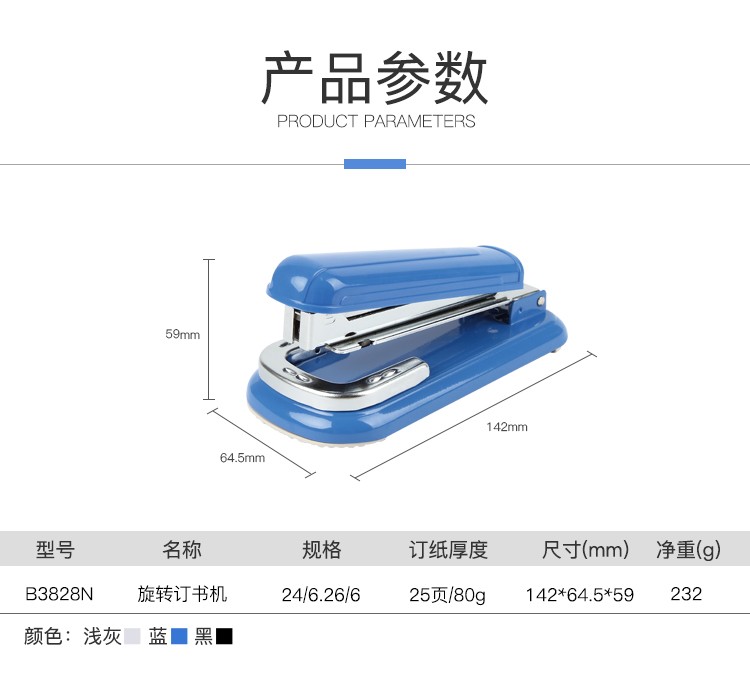 齊心B3828可旋轉(zhuǎn)訂書機(jī)12# 25頁*6