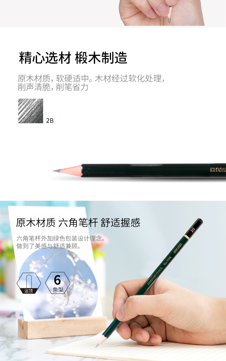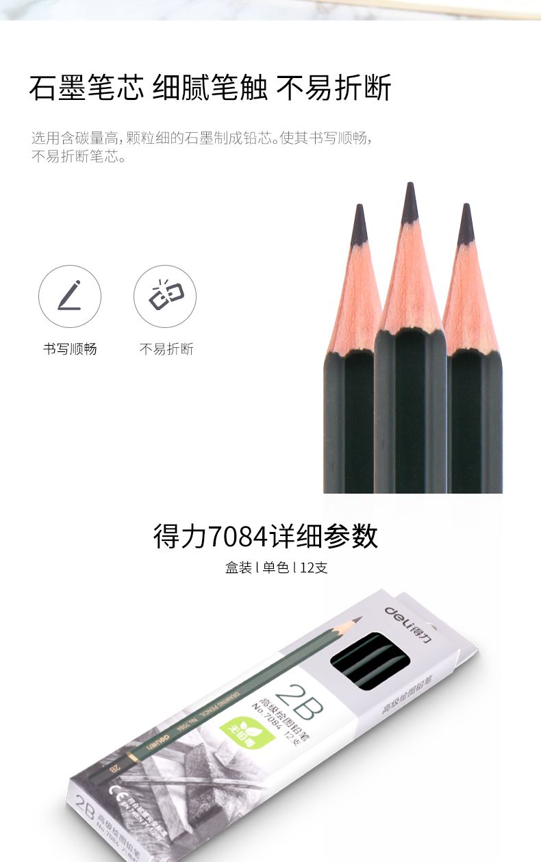 得力7084-2B高級繪圖鉛筆(綠色)(12支/盒)