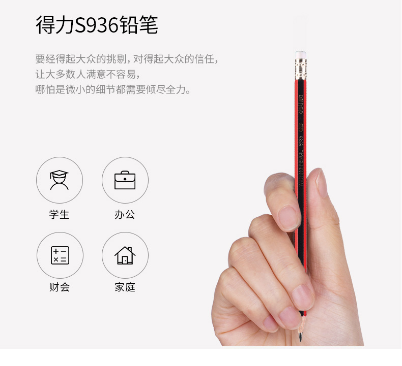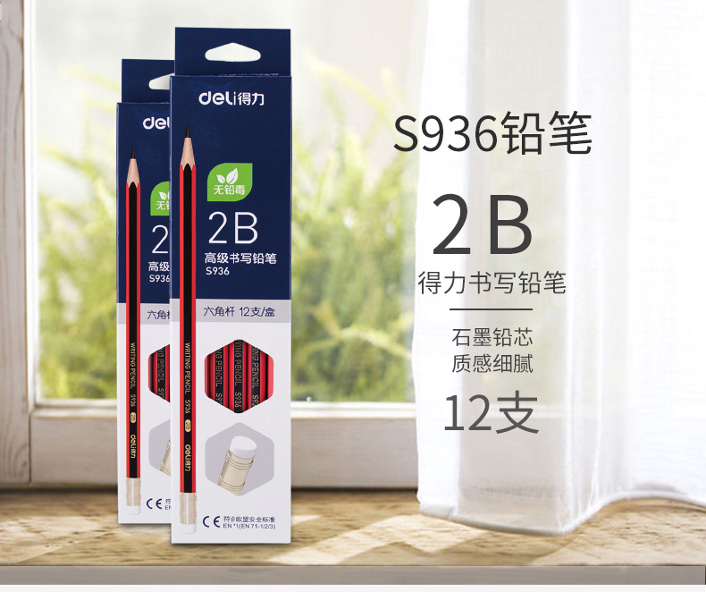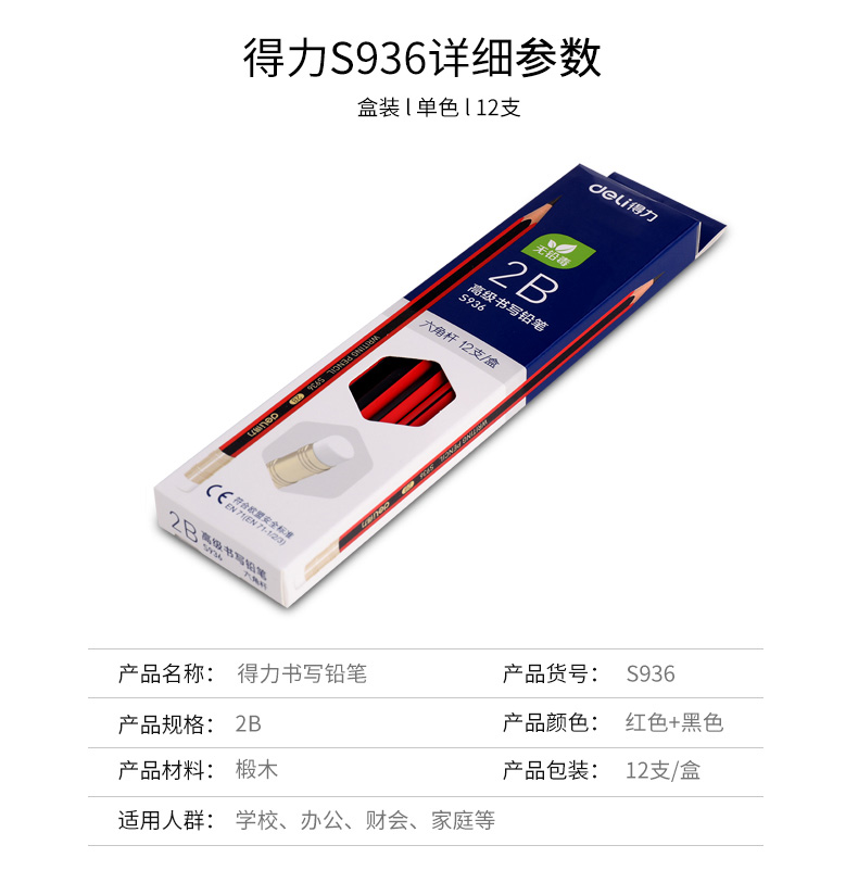 得力S936-2B高級書寫鉛筆帶橡皮(紅色)*12