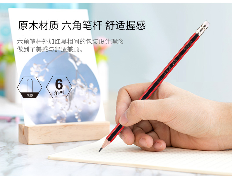 晨光HB木桿鉛筆六角紅黑抽條AWP30802*12