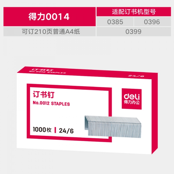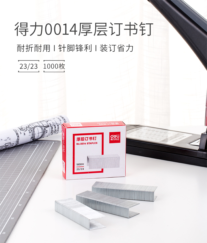 得力0014厚層訂書釘23/23(1000枚/盒)