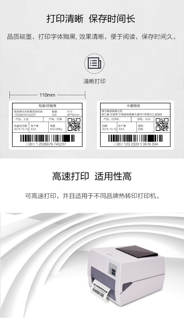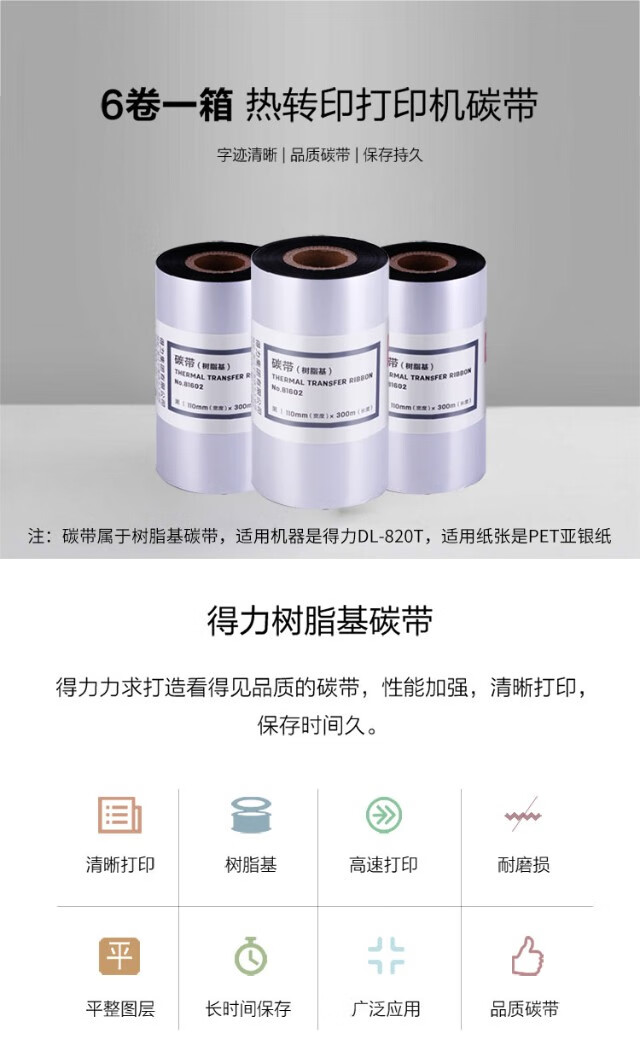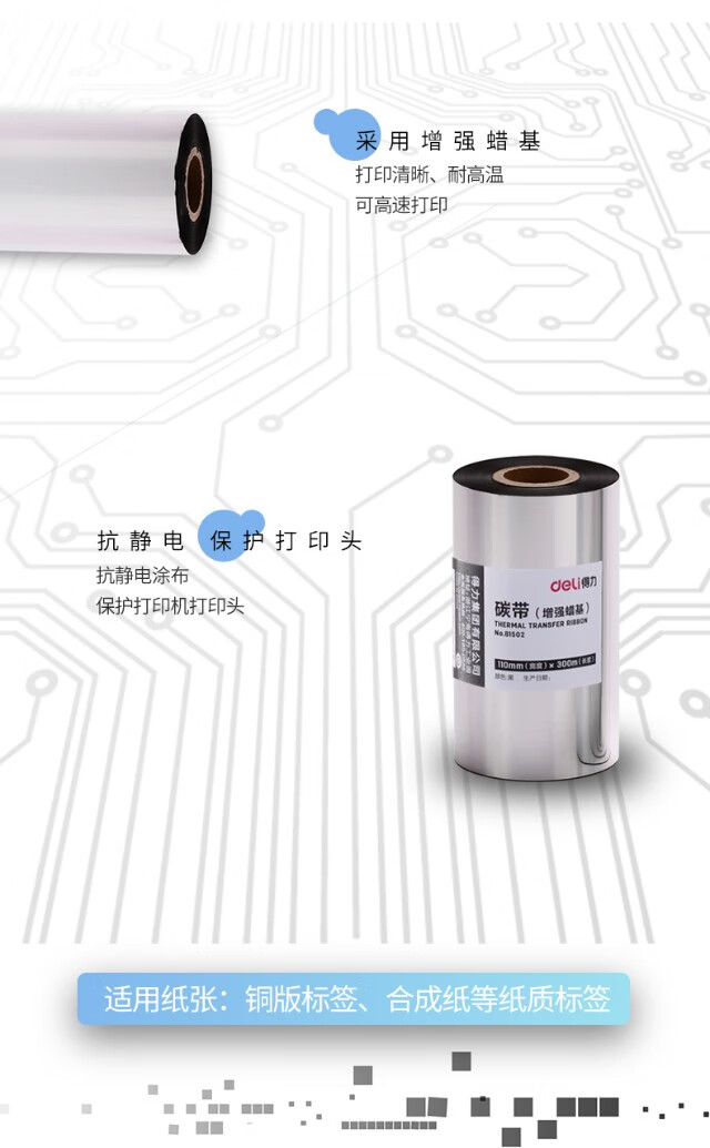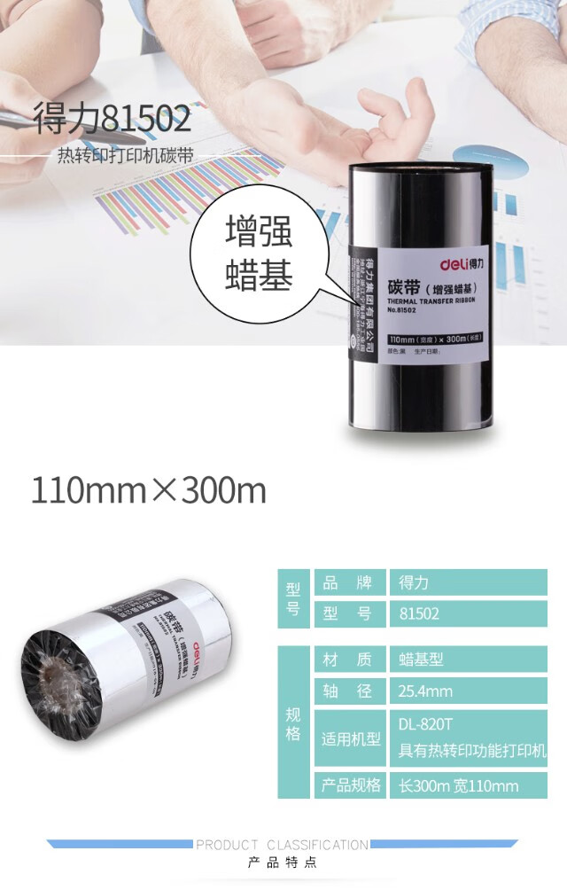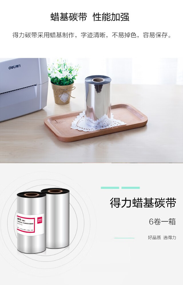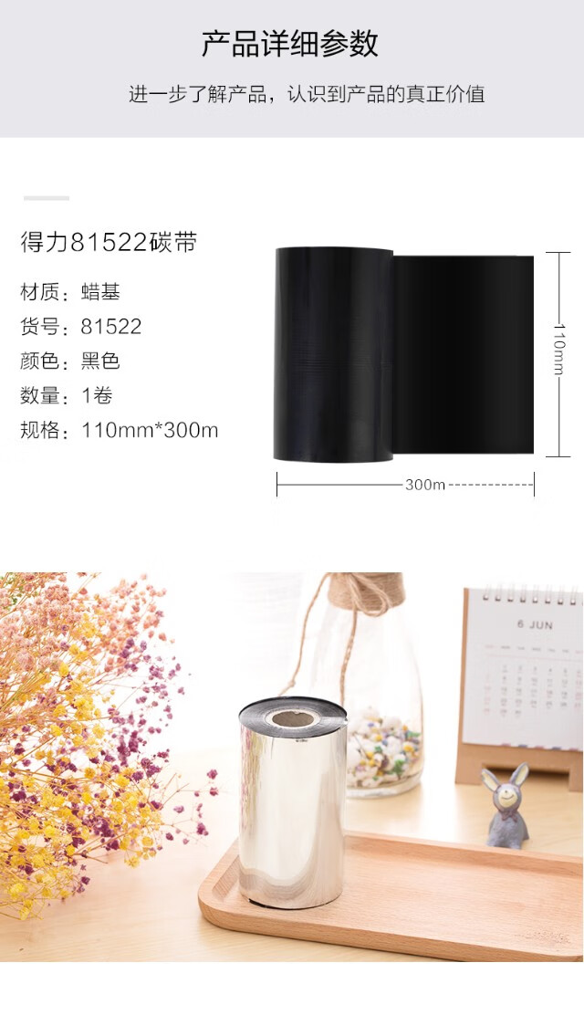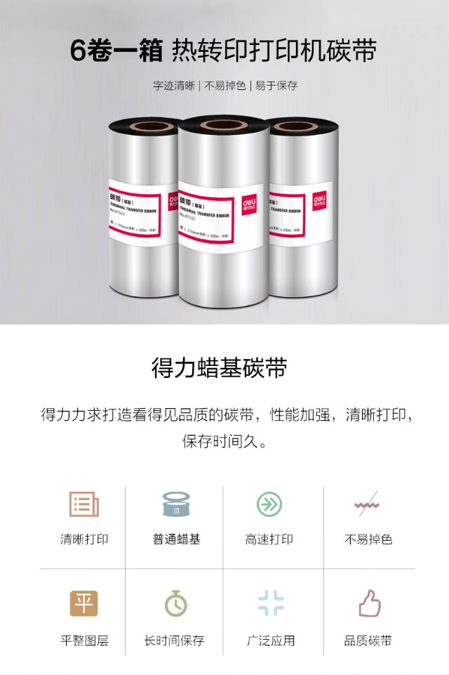 得力81525普通蠟基碳帶(黑)110mm*70m