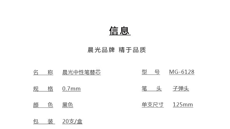 晨光最優中性替芯MG6128黑0.7*20