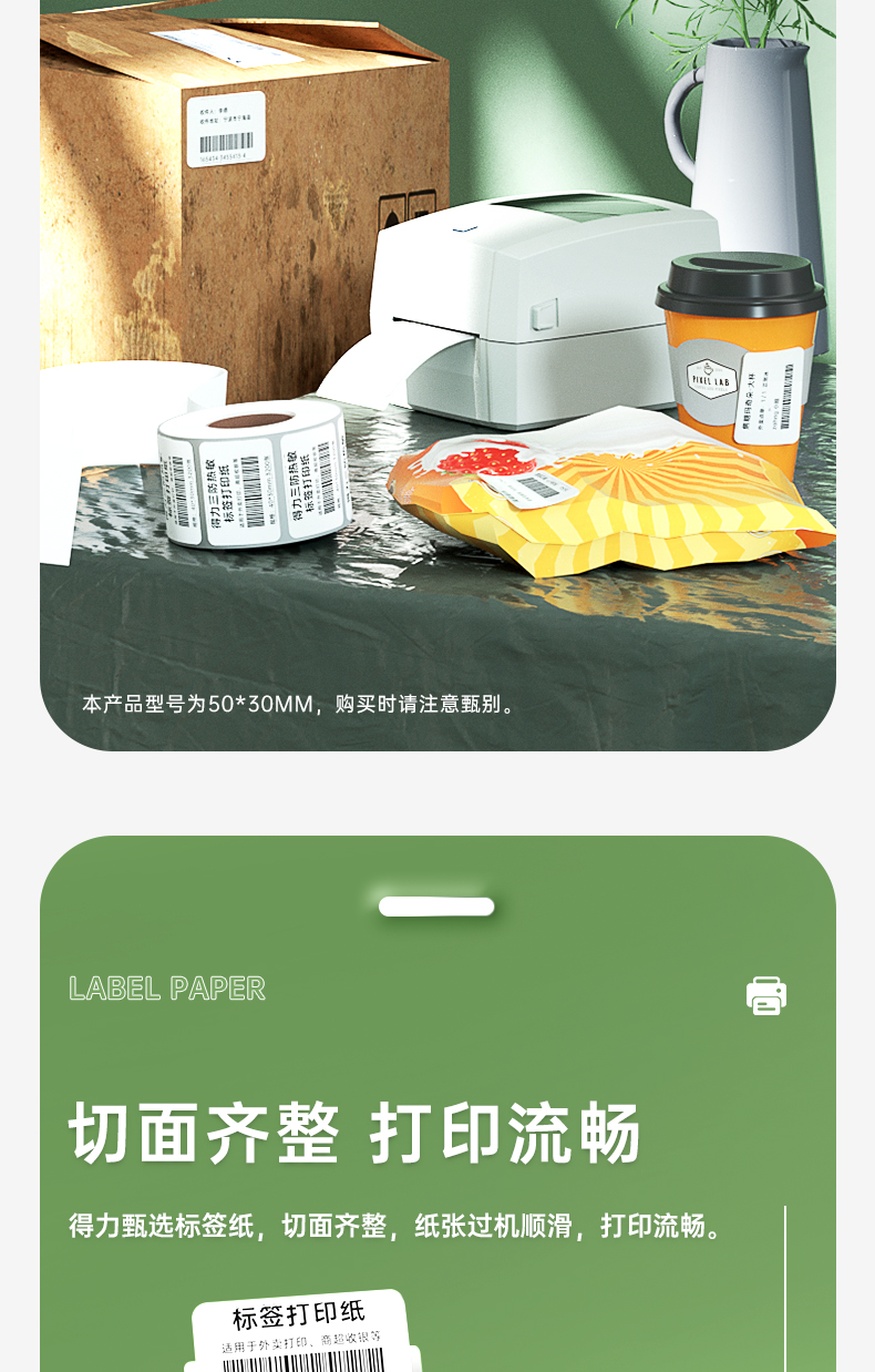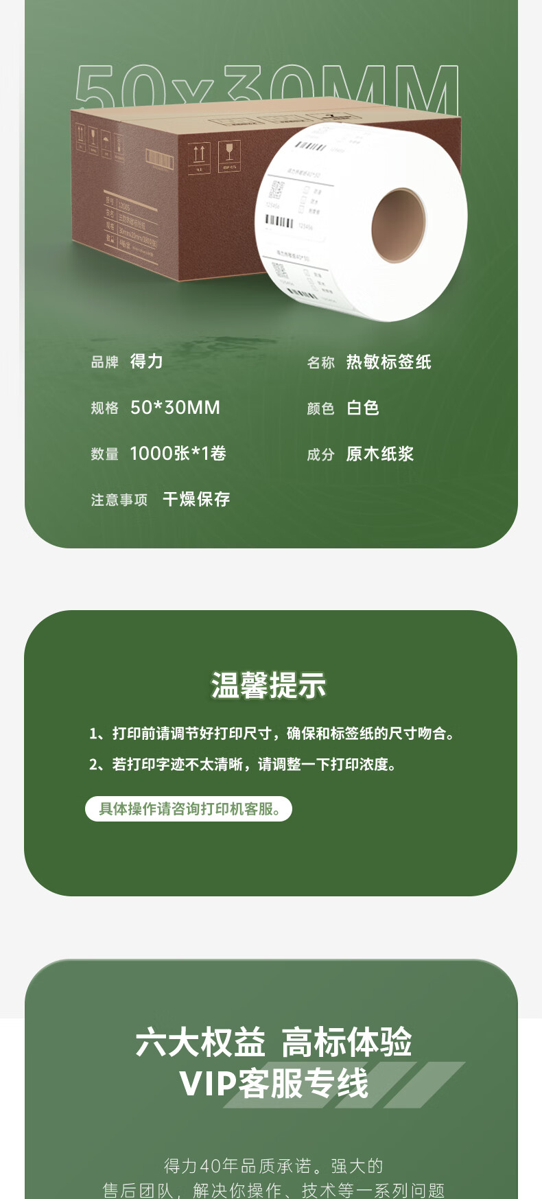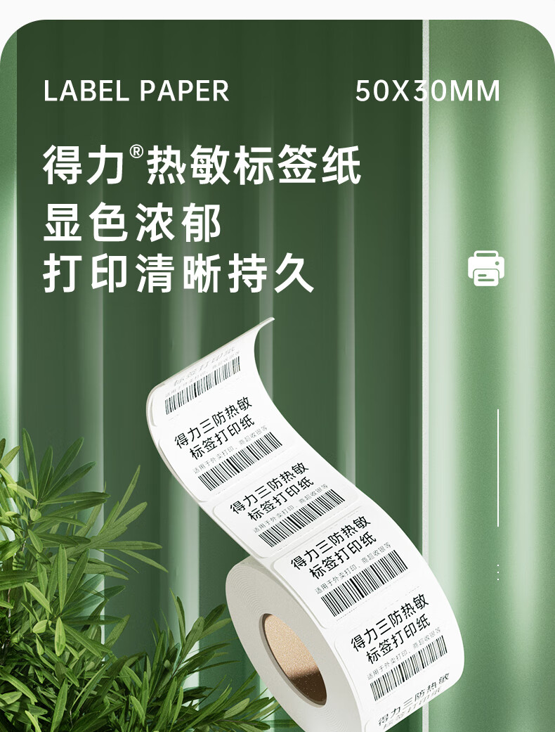 得力12003珊瑚海三防熱敏標簽紙50*30mm*1000枚