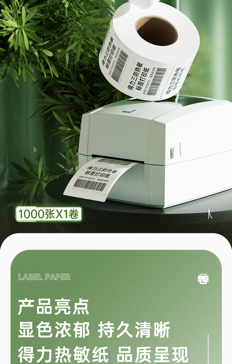 得力12003珊瑚海三防熱敏標簽紙50*30mm-1000枚(白)(1卷/筒)