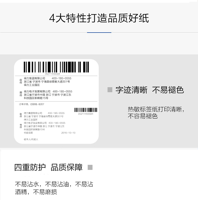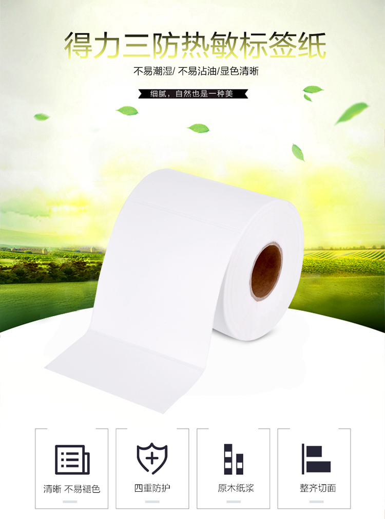 得力12000珊瑚海三防熱敏標簽紙40*30mm*800枚*4卷
