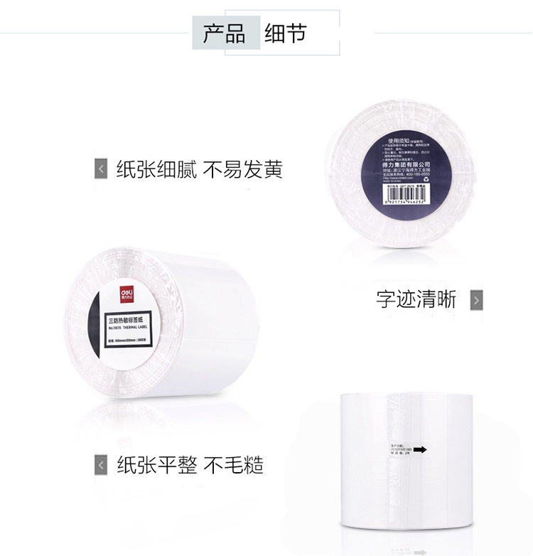 得力11874萊茵河長效三防熱敏標簽紙50*30mm*1000枚*1卷