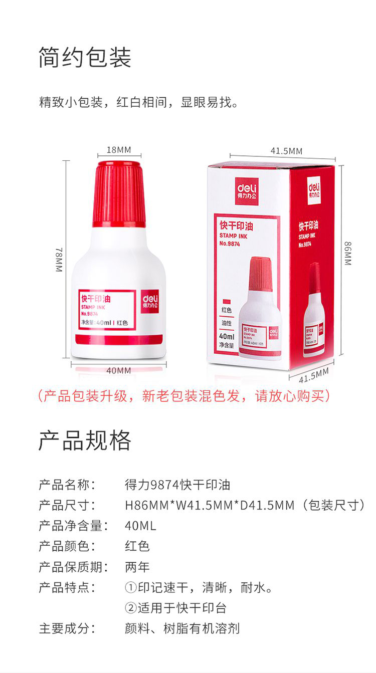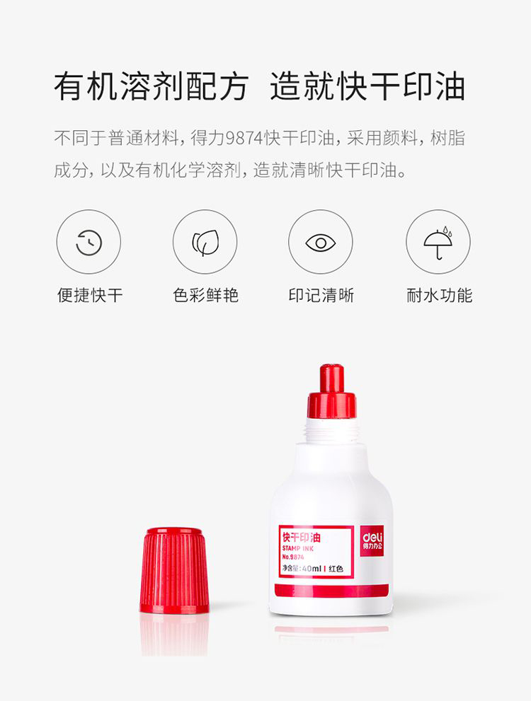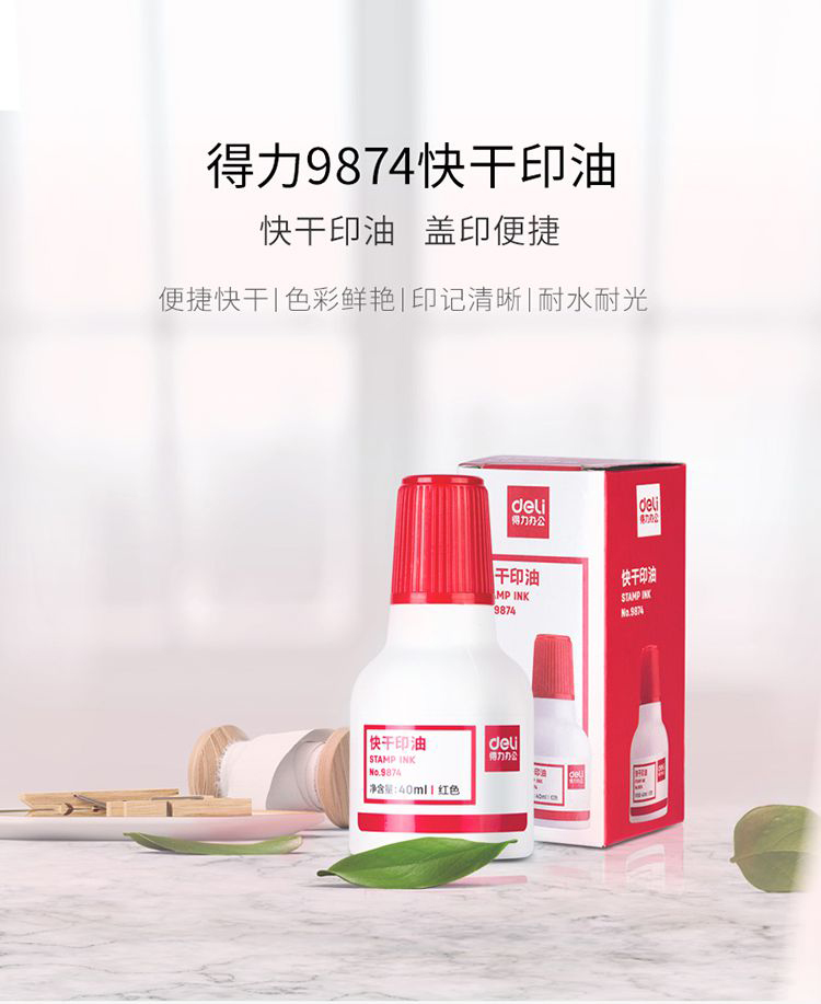 得力9893方形鐵蓋秒干印臺143x87mm(紅)