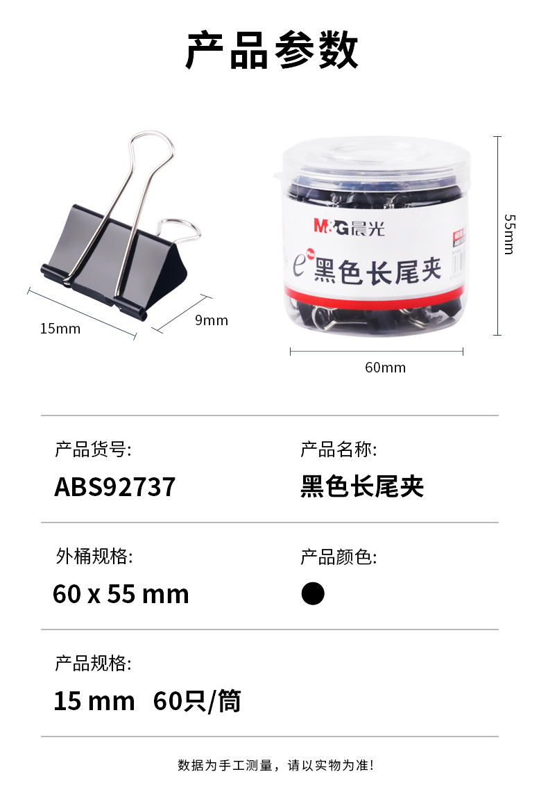 晨光Eplus黑色長尾夾15mm*60(筒裝)ABS92737