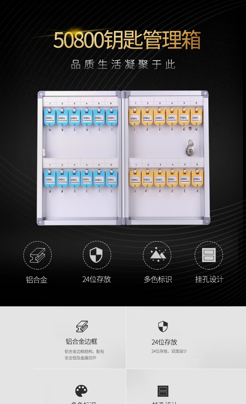 得力50800鋁合金鑰匙管理箱24位(銀)