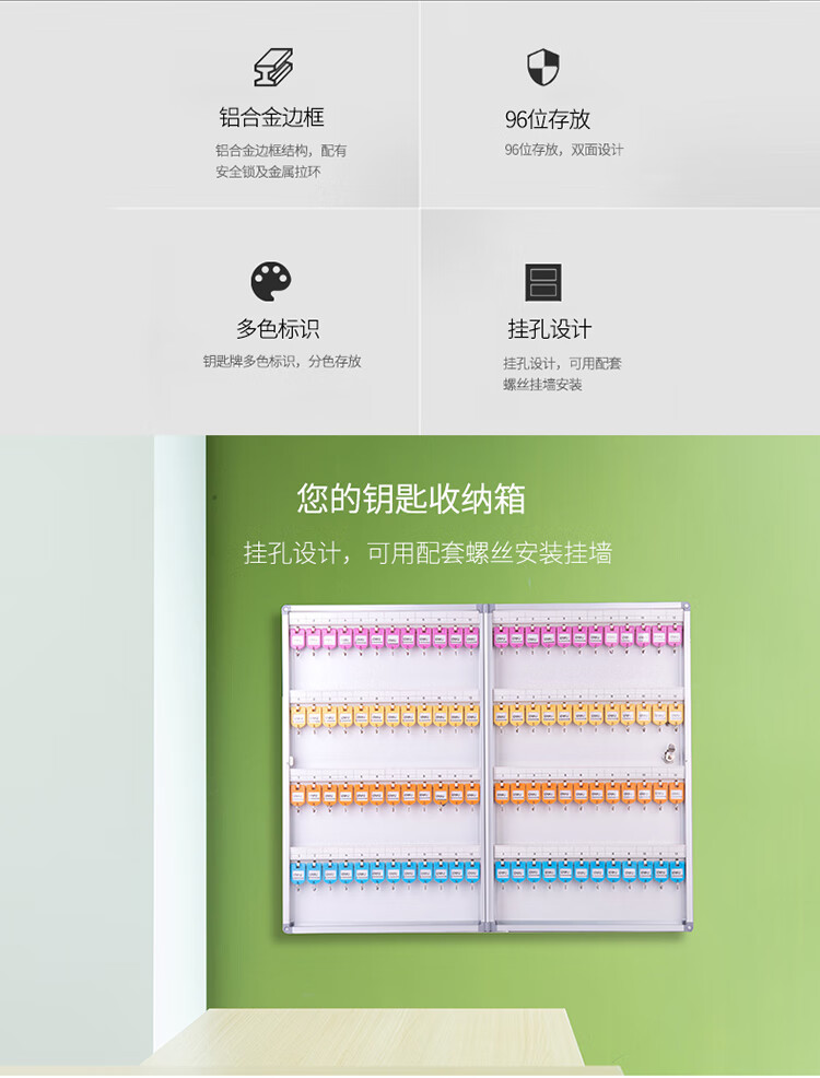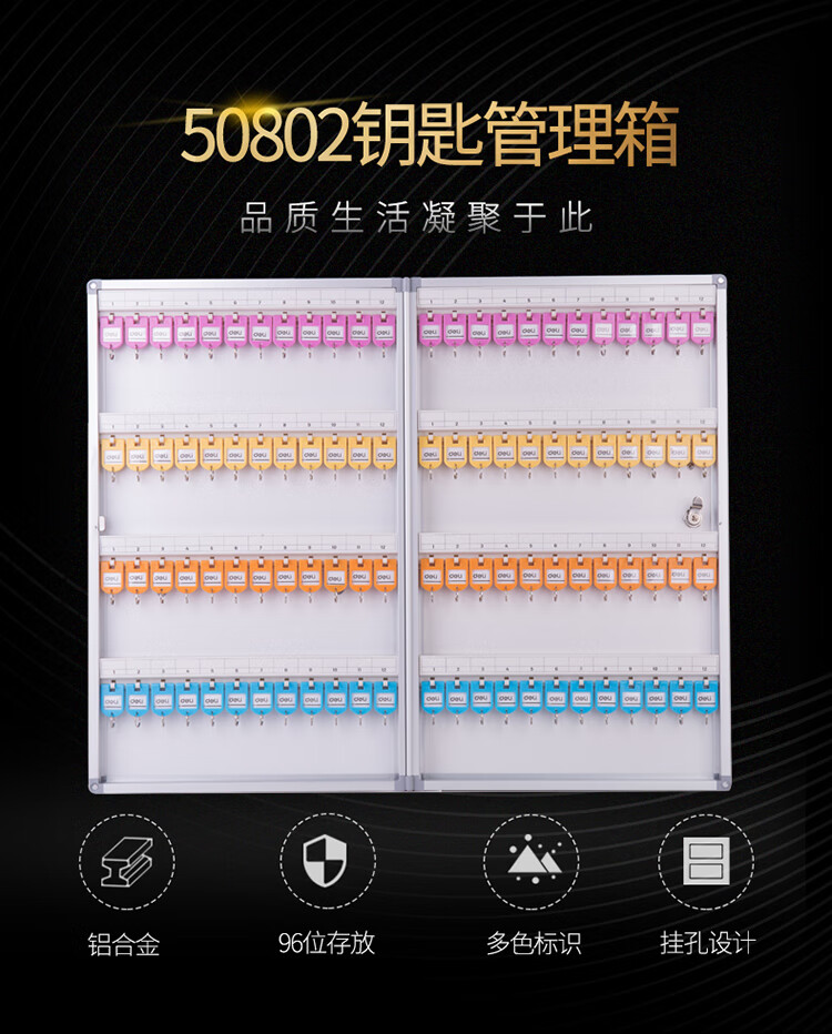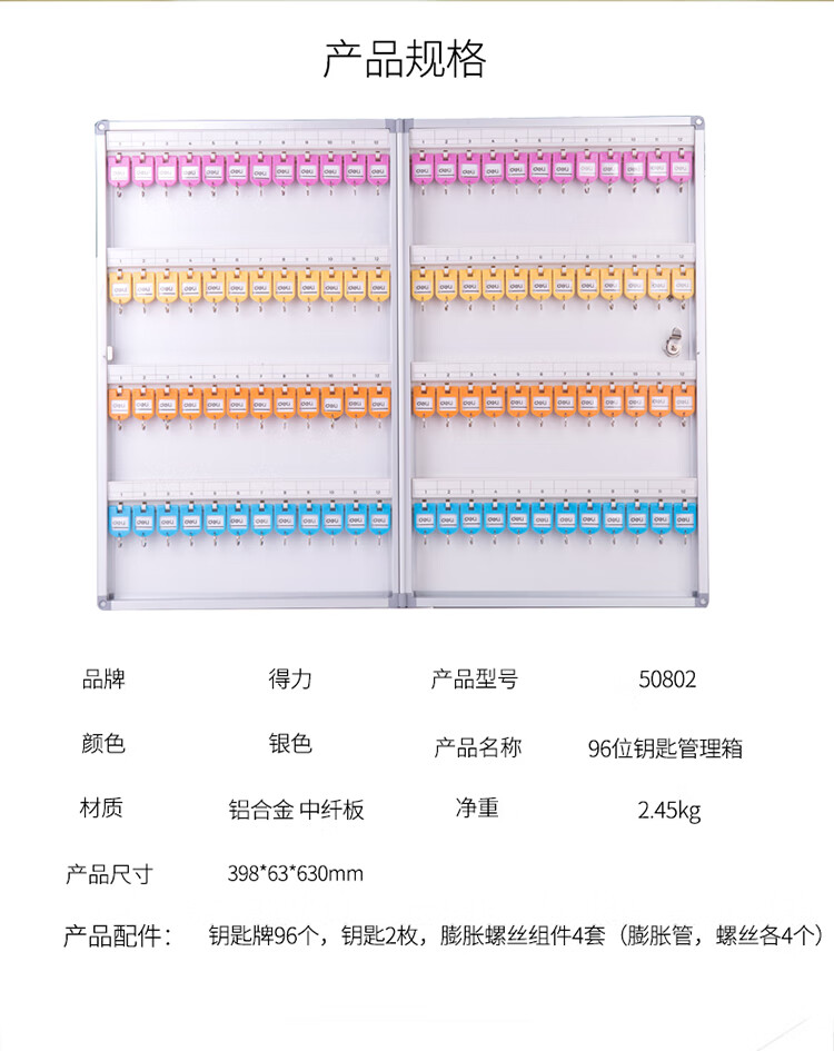 得力50802鋁合金鑰匙管理箱96位(銀)