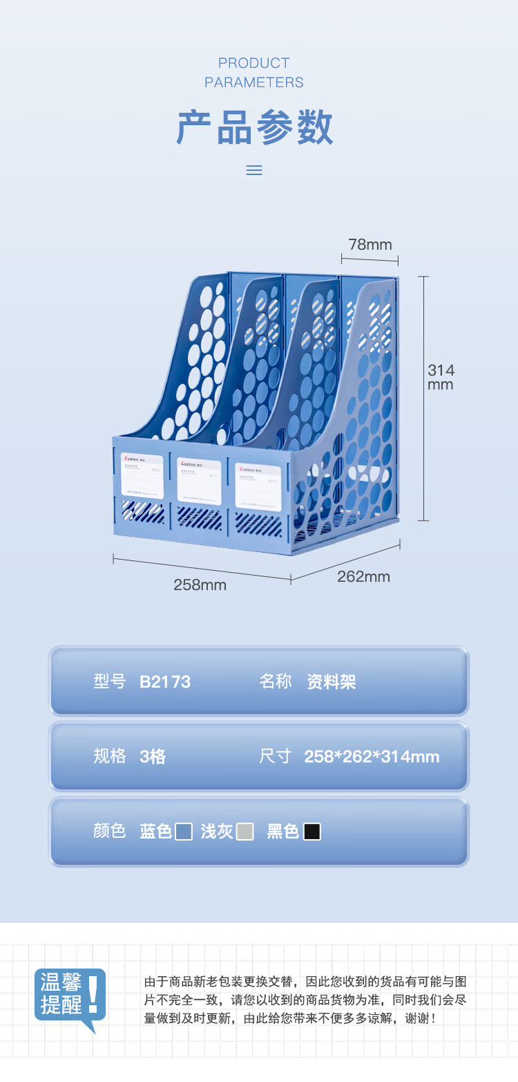 齊心B2173超省錢三格資料架藍*20