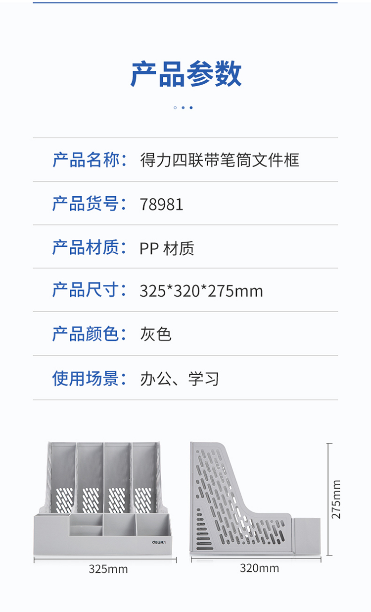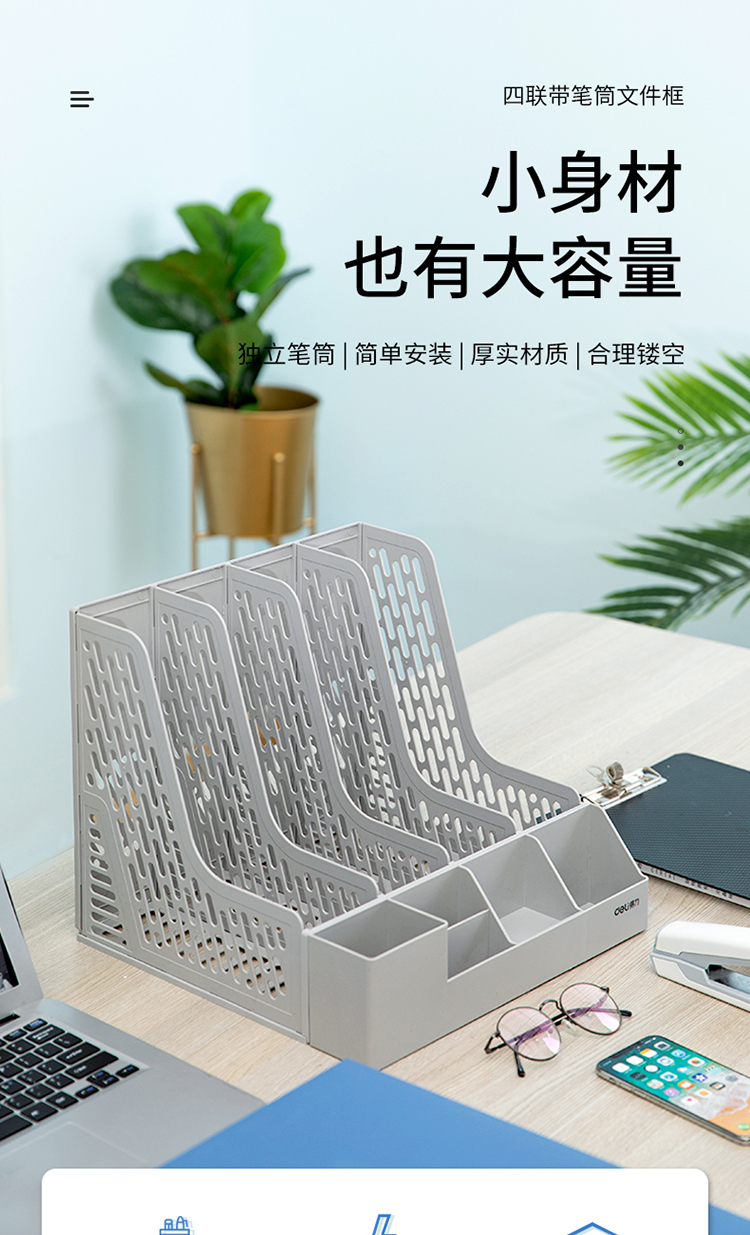得力78981多功能四聯文件框(灰)