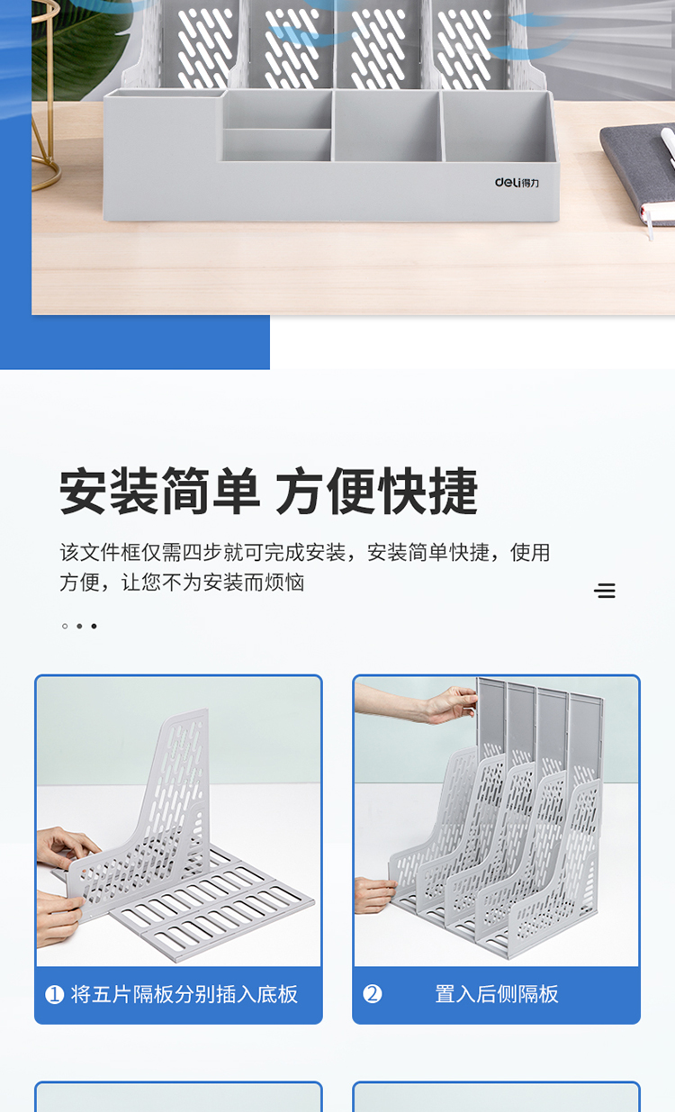 得力78981多功能四聯文件框(藍)