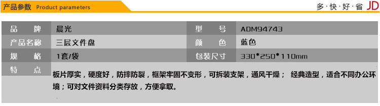 晨光三層文件盤(藍)ADM94743*5