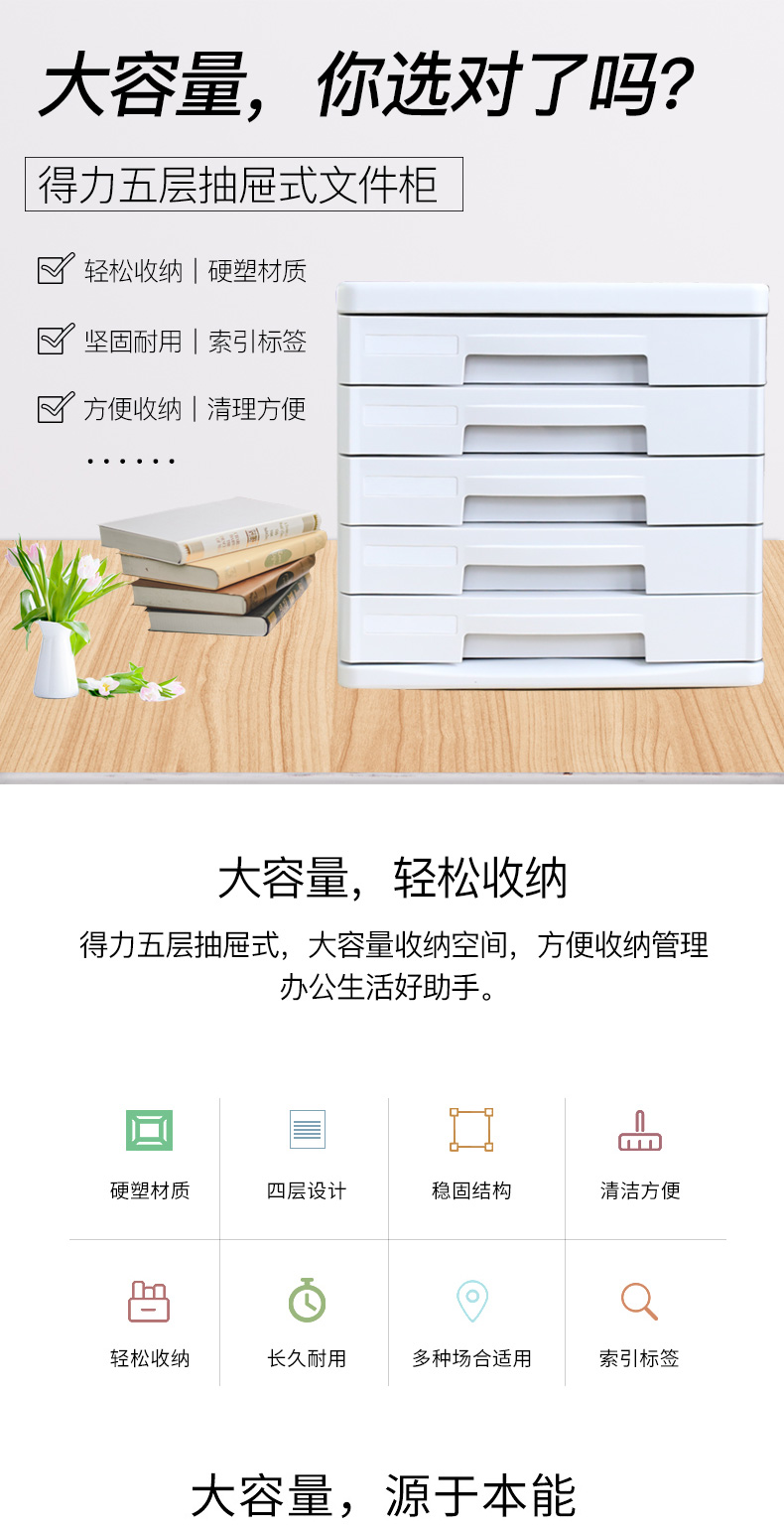 得力9773五層硬塑文件柜(灰)