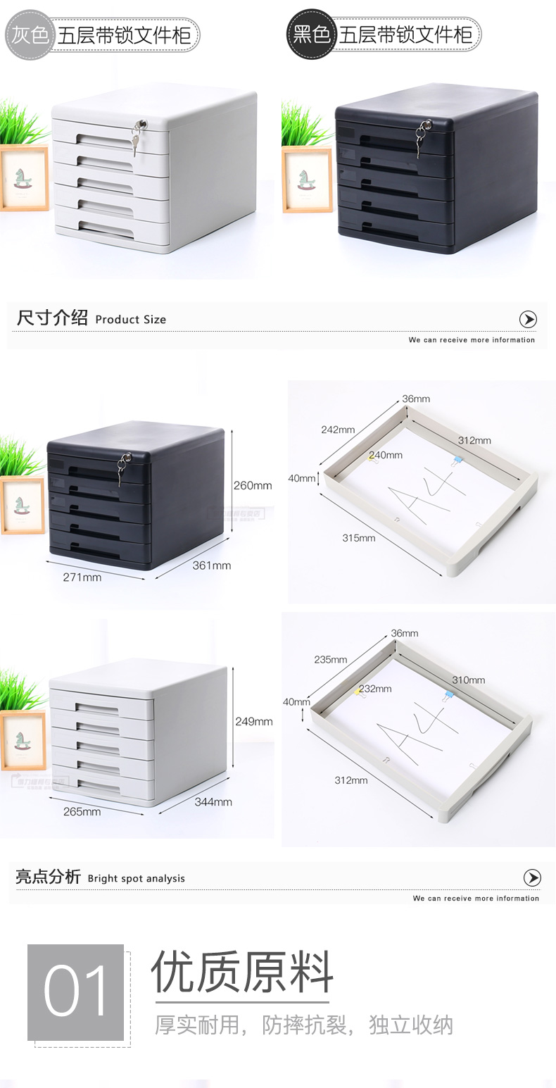 得力9773五層硬塑文件柜(黑)