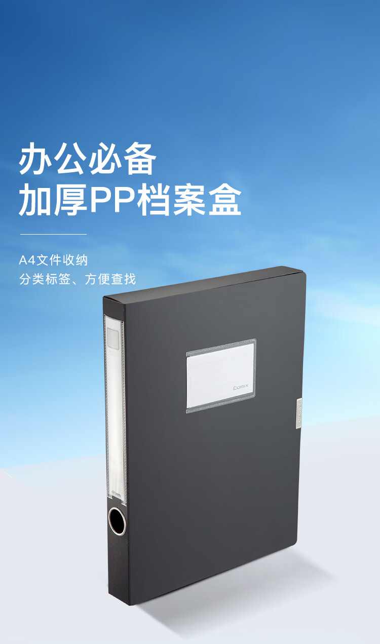 齊心A1248超省錢PP檔案盒A4 35mm黑*18