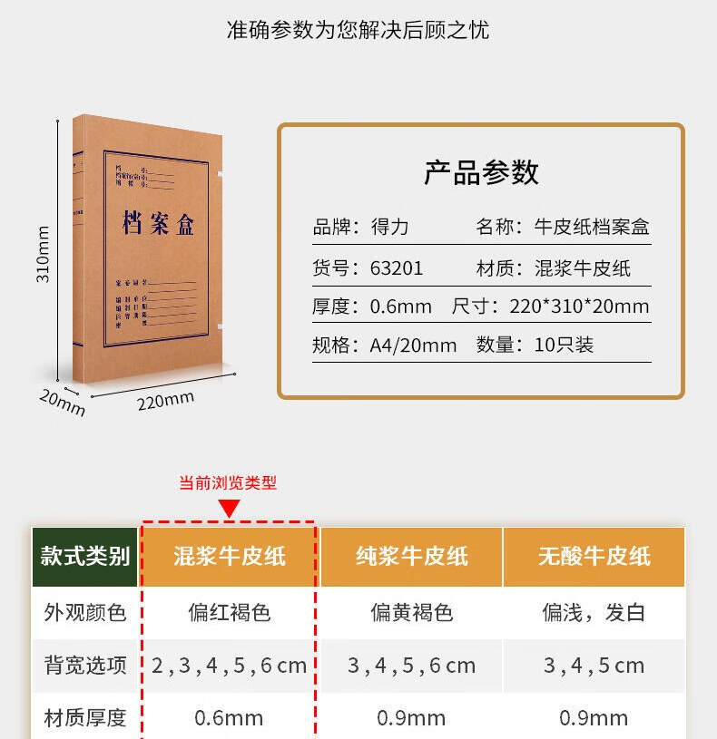 得力5620牛皮紙檔案盒6cm*10