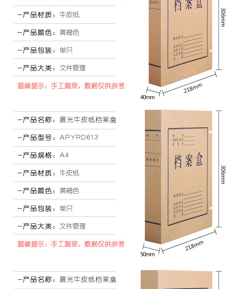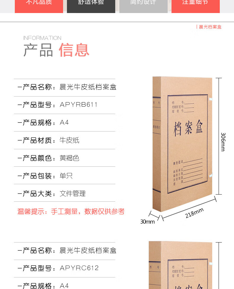 晨光APYRB61100-A4牛皮紙檔案盒(3CM)*10psc