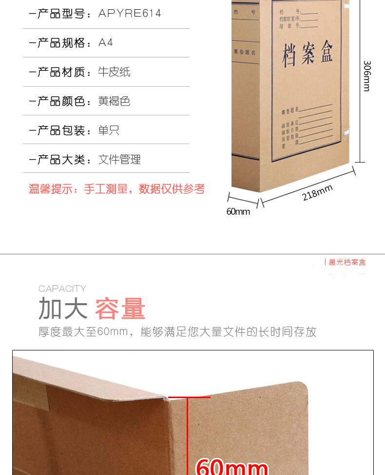 晨光A4牛皮紙檔案盒(6CM)APYRE61400*10pcs