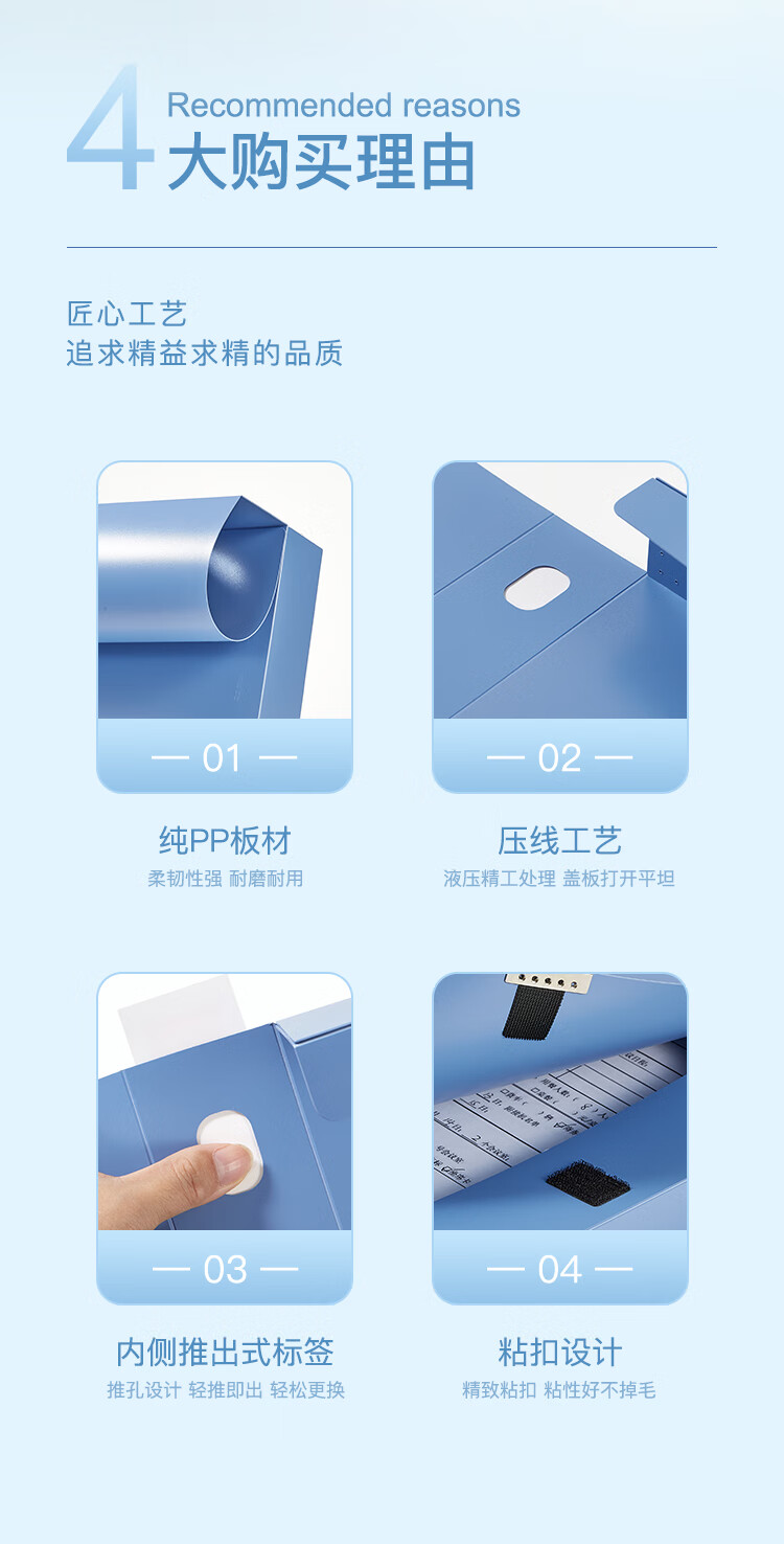 齊心A1249超省錢PP檔案盒A4 55mm藍*18