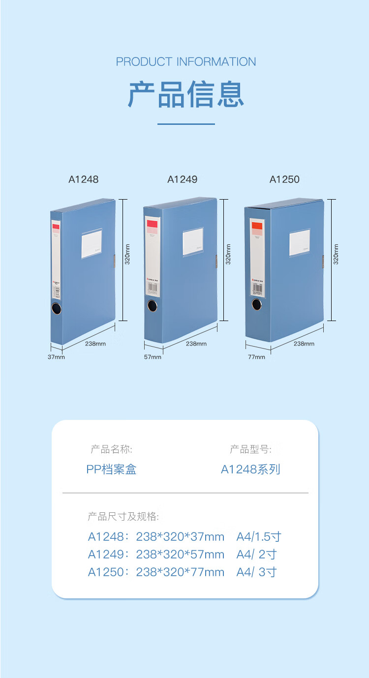 齊心A1248超省錢PP檔案盒A4 35mm藍*18