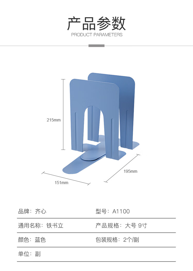 齊心A1101家用型鐵書立藍7寸 2個/套*24