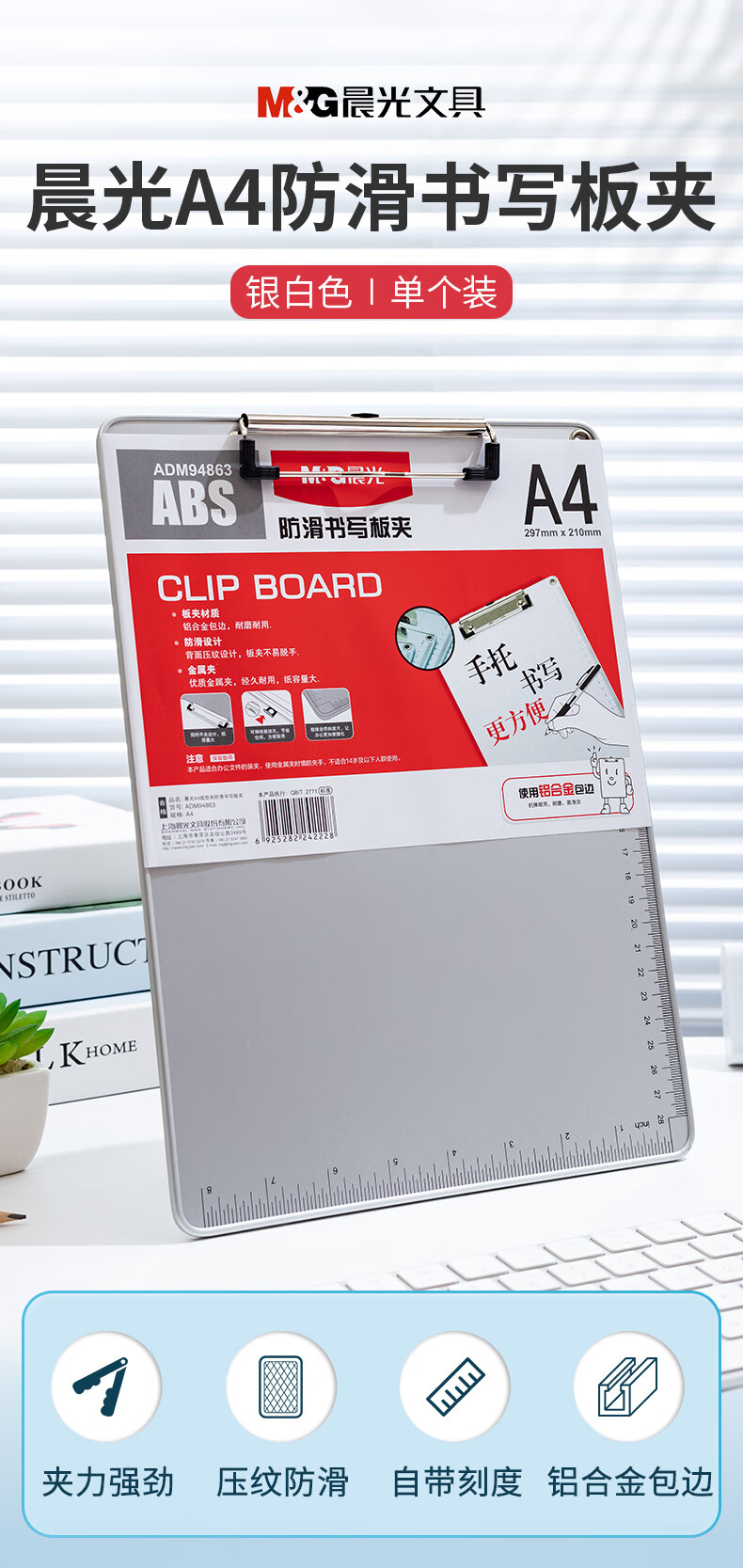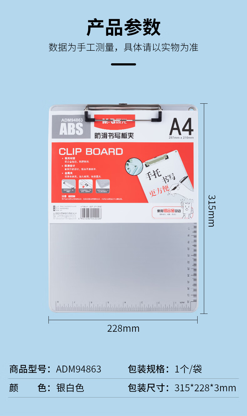 晨光便攜式A4豎式板夾(藍色)ADM95106