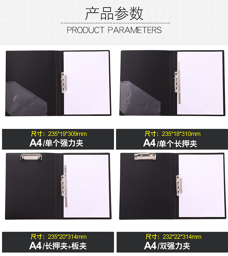 晨光A4新銳派單強(qiáng)力長押文件夾黑ADM95090