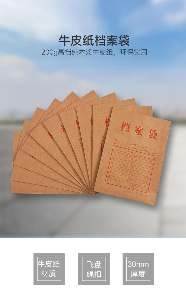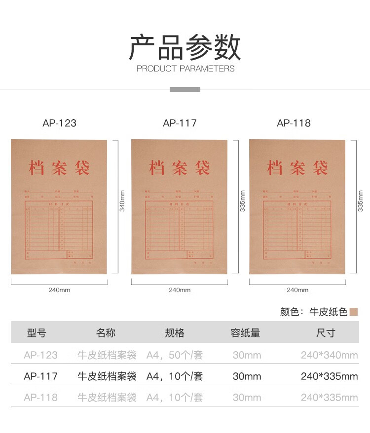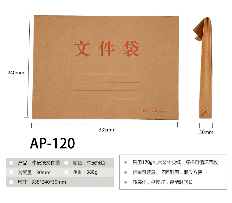 齊心AP-118本色純木漿牛皮紙豎式檔案袋A4 10個/套*30
