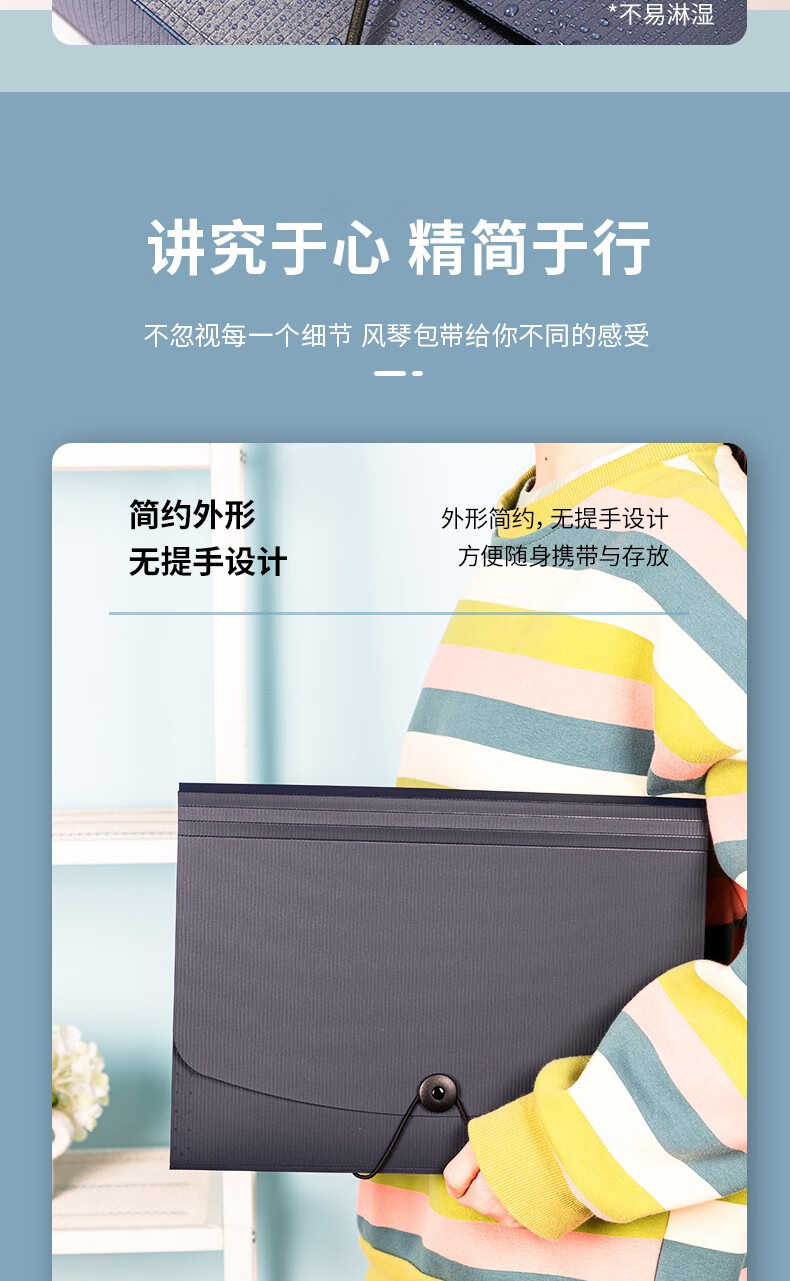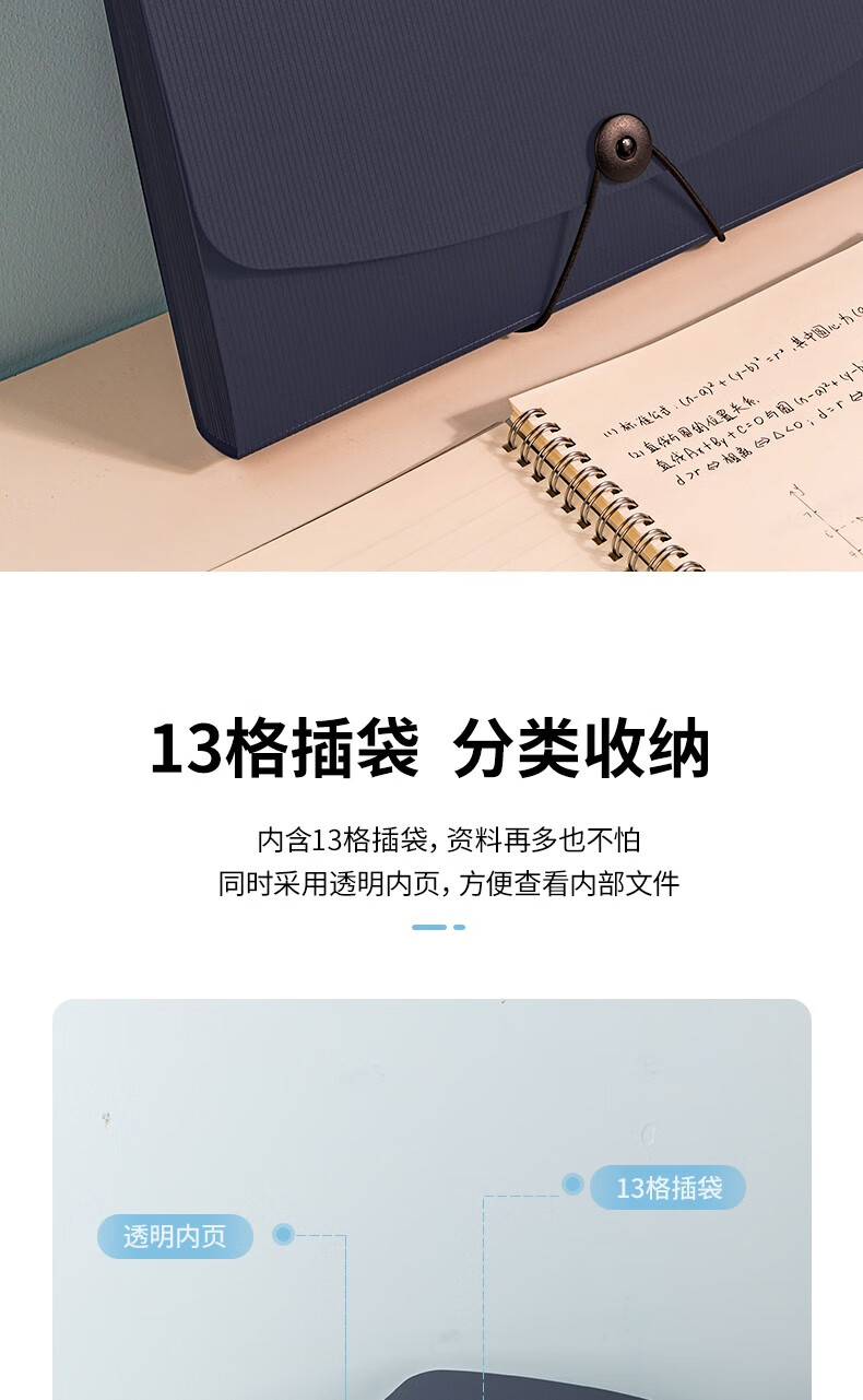得力63951立式風琴包13格A4文件夾橫式(深藍)