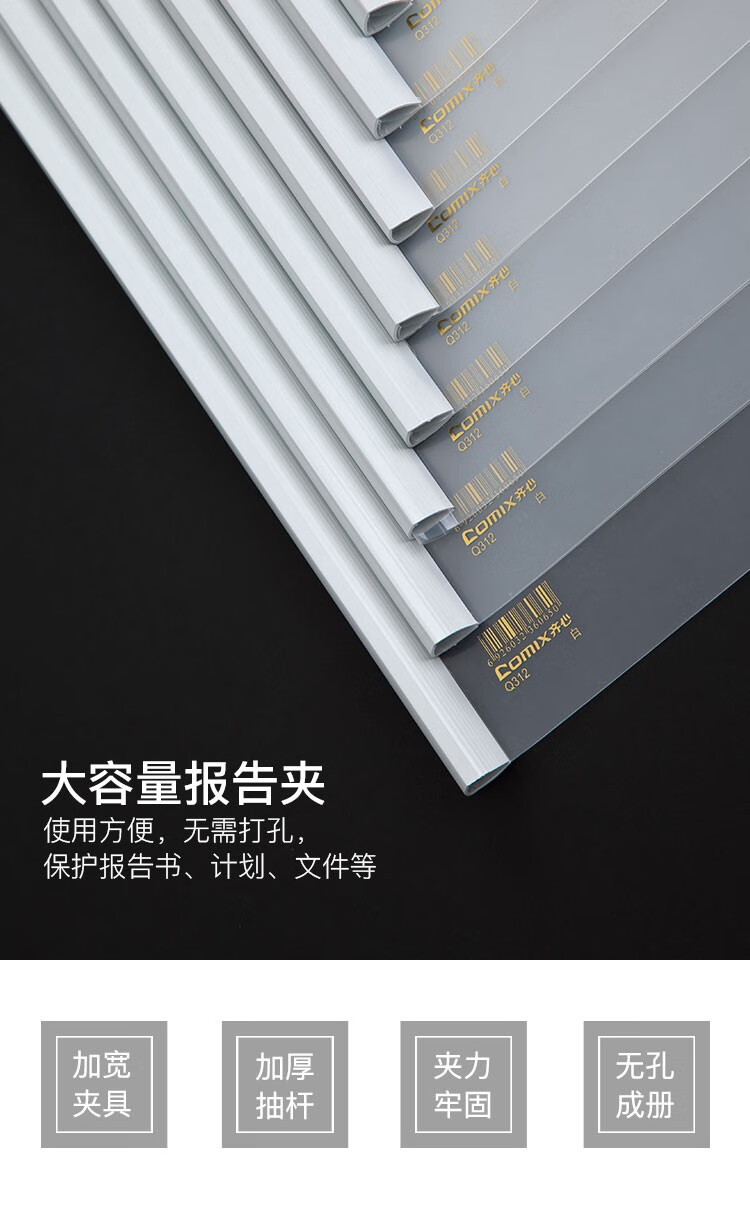 齊心Q310-1實色抽桿夾A4 30頁白色(10pcs)