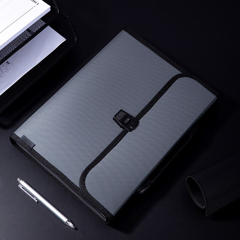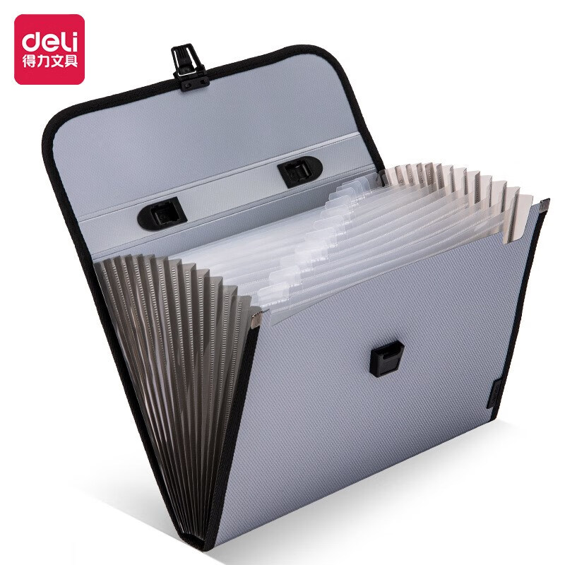 得力5236繩扣式風琴包13格(灰)