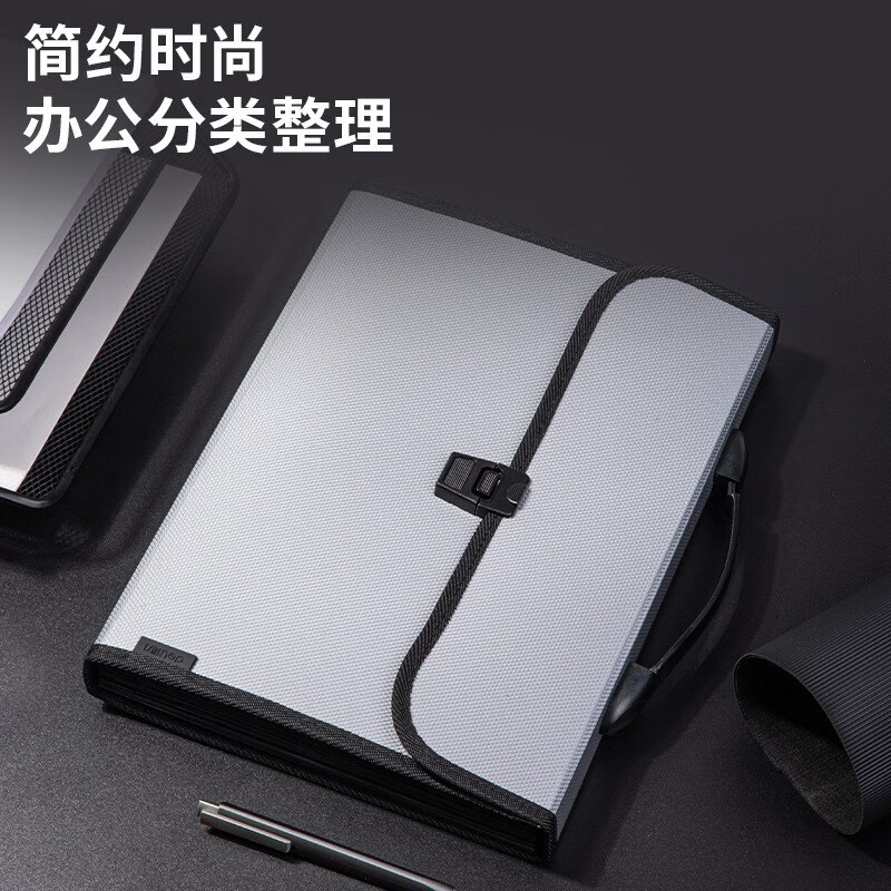得力63951立式風琴包13格A4文件夾橫式(淺灰)