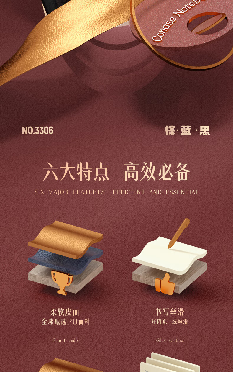 得力3186商務辦公筆記本(棕色)25K 160頁