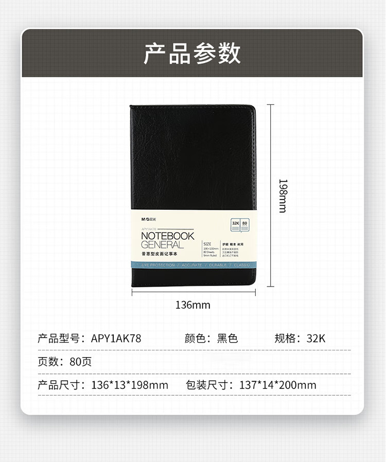 晨光18k普惠皮面記事本160頁黑APY1DK78