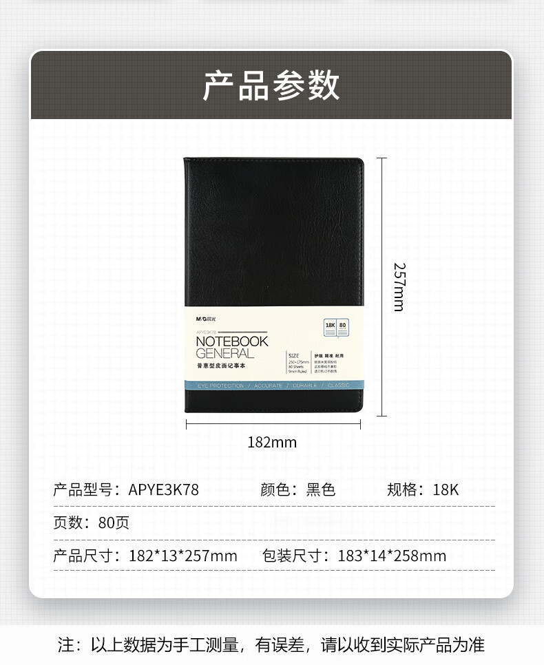 晨光18k普惠皮面記事本160頁黑APY1DK78