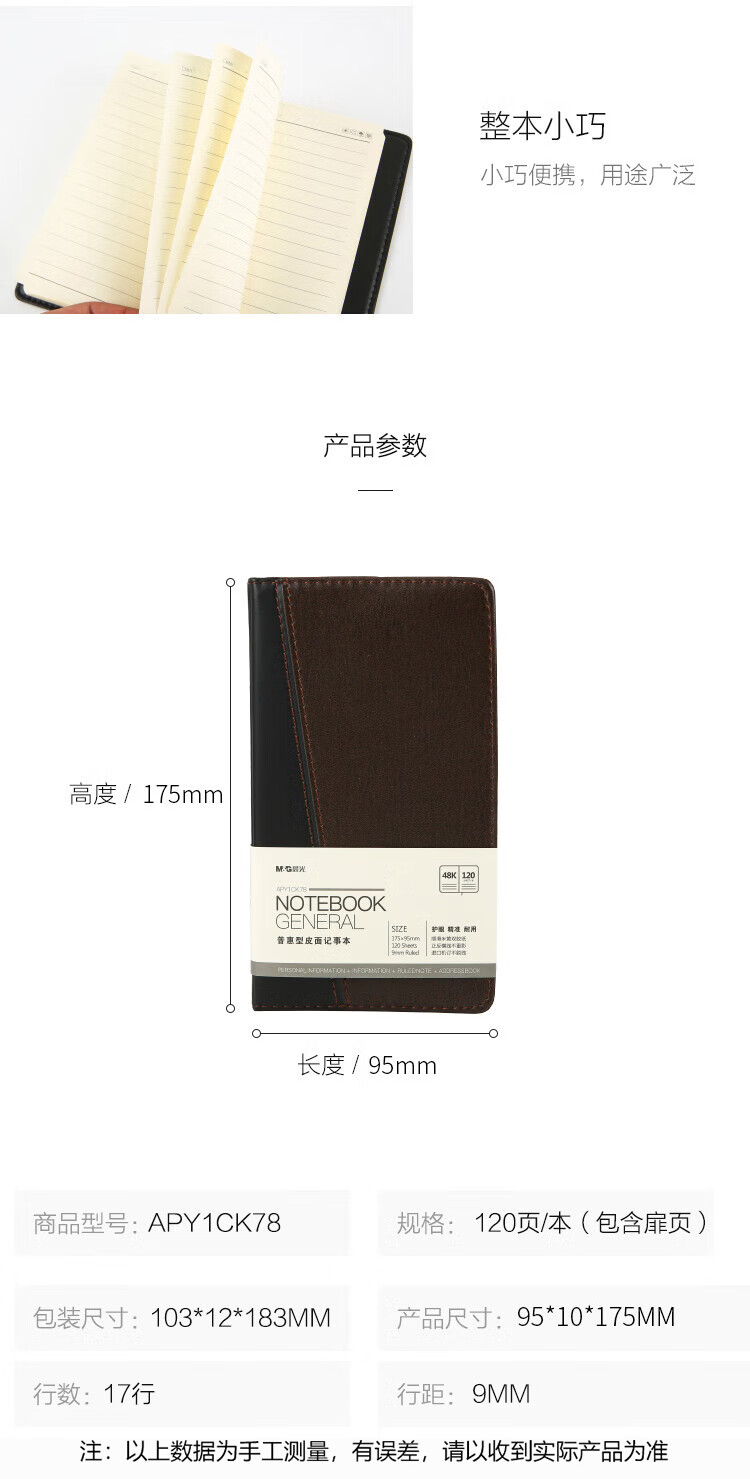 晨光48k普惠皮面記事本120頁黑APY1CK78