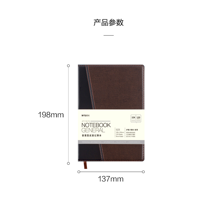 晨光32k普惠皮面記事本160頁棕APY1FK78