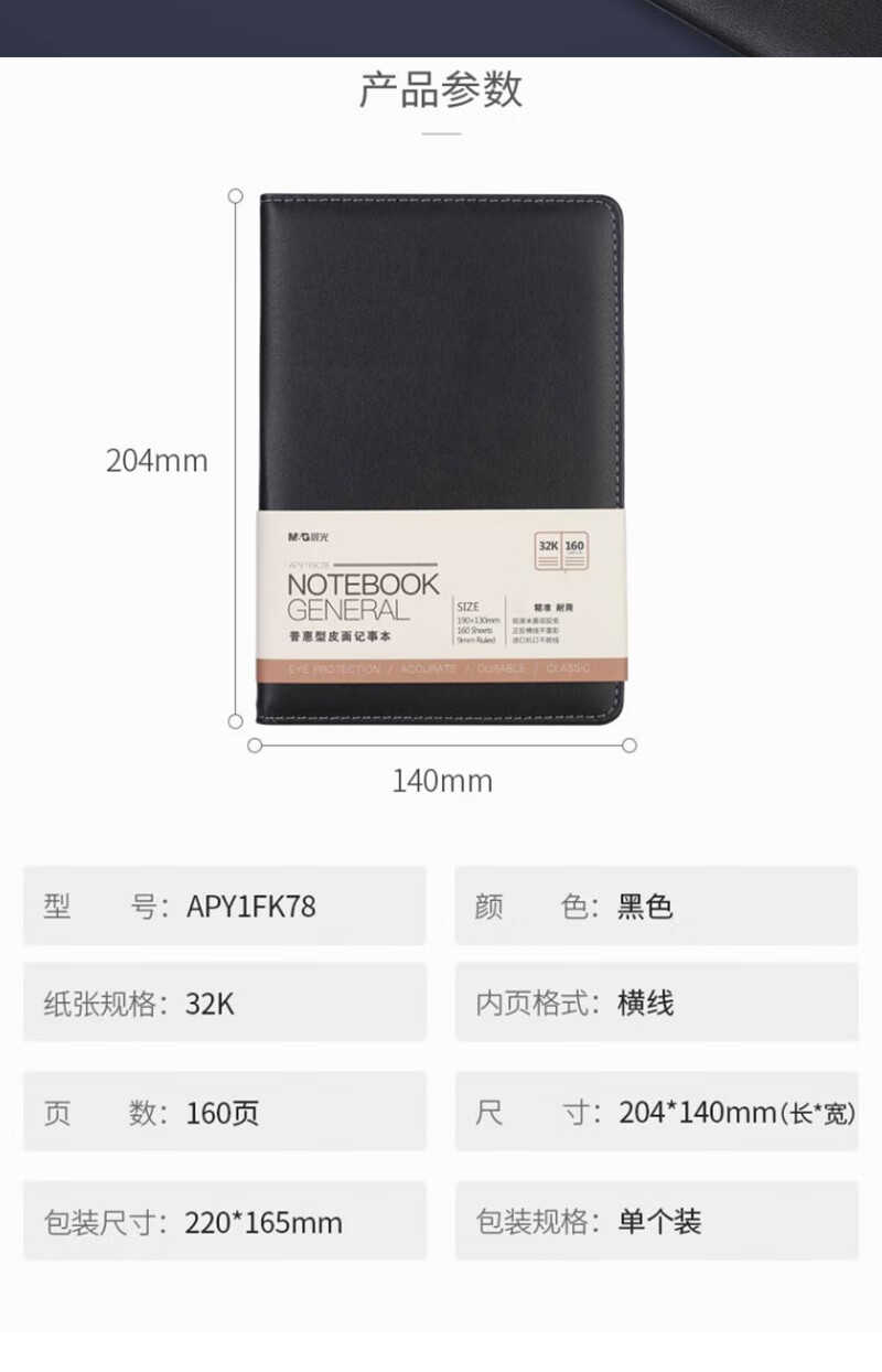 晨光18k普惠皮面記事本160頁黑APY1DK78