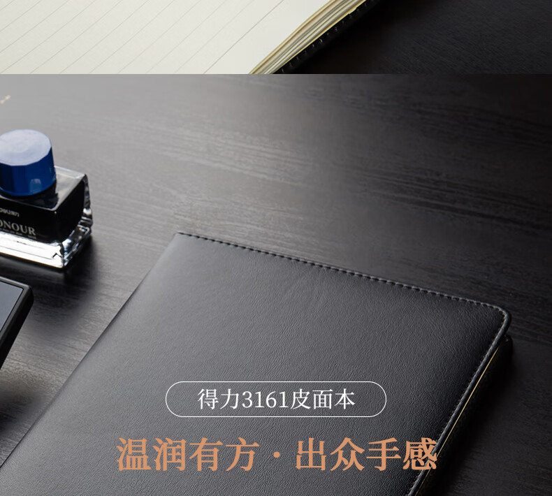 得力22215商務插筆皮面本(黑色)
