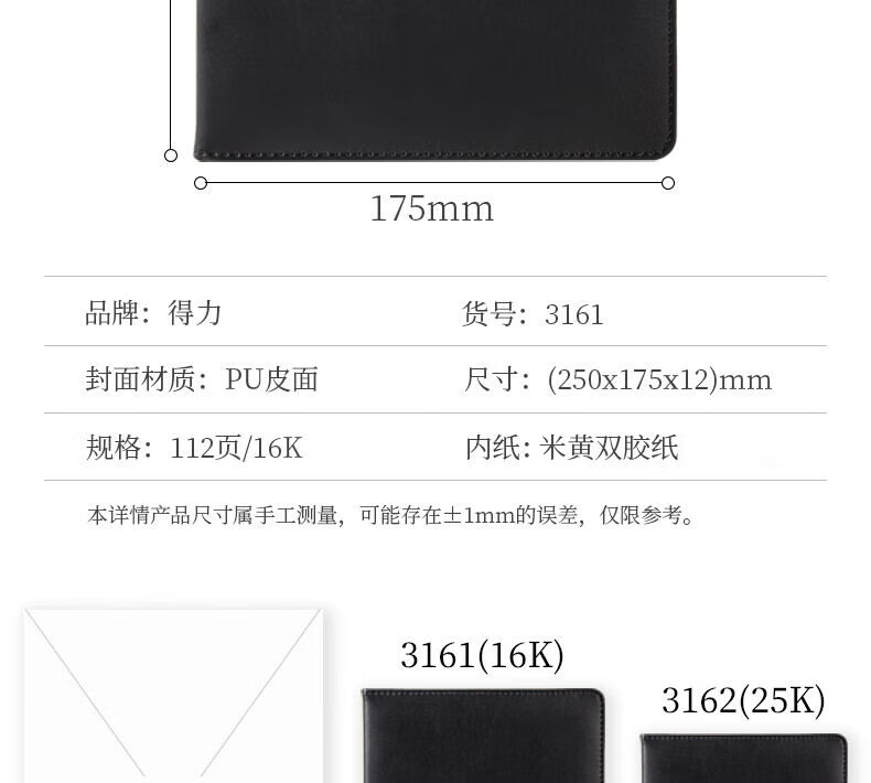 得力3161高級記事本(黑)16k-112張