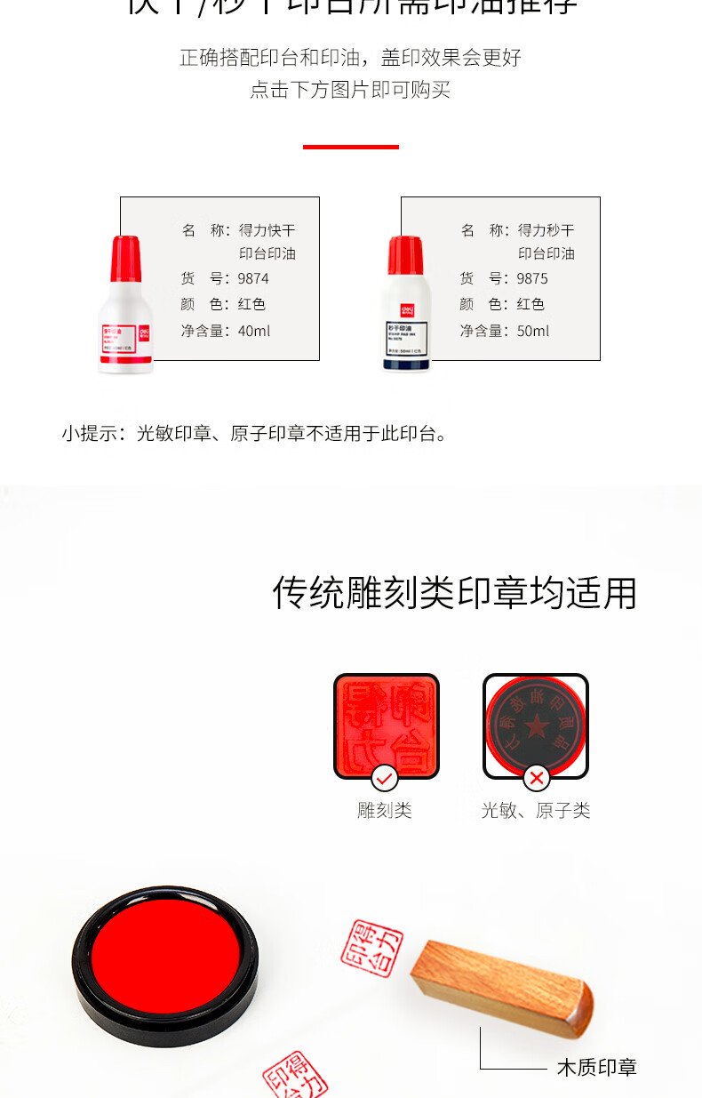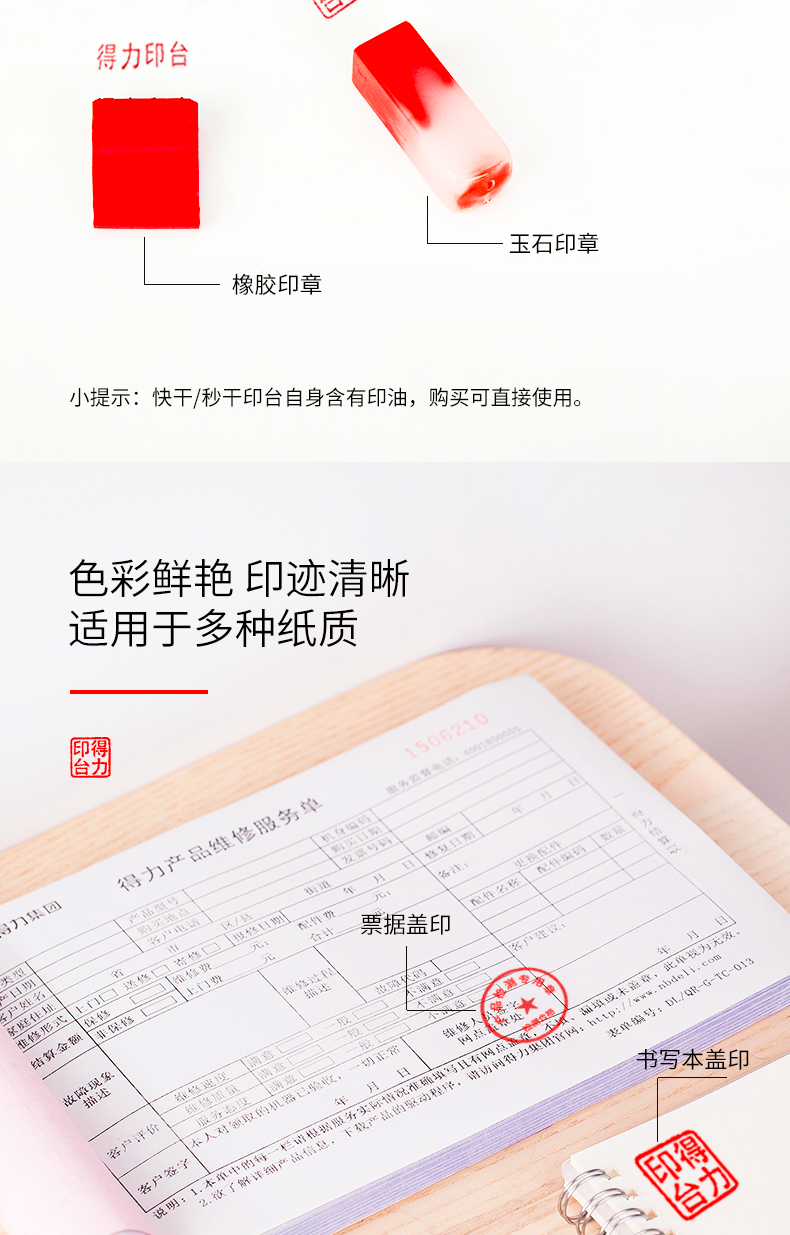 得力9893方形鐵蓋秒干印臺143x87mm(紅)