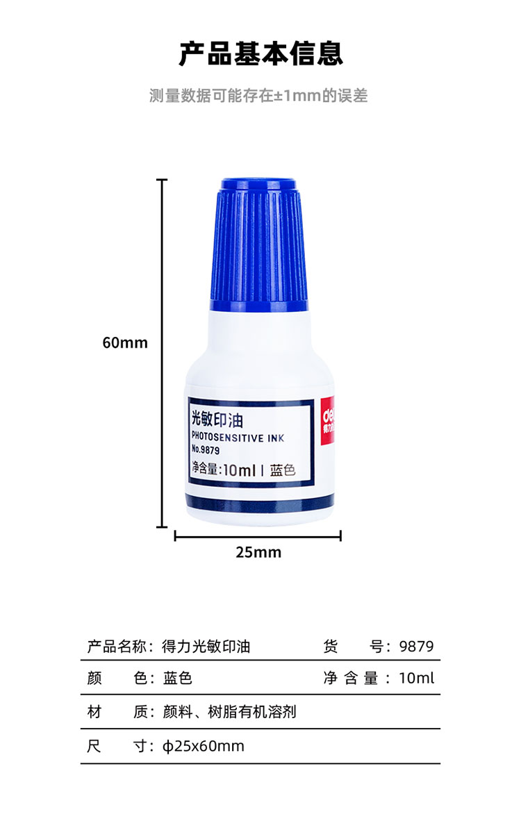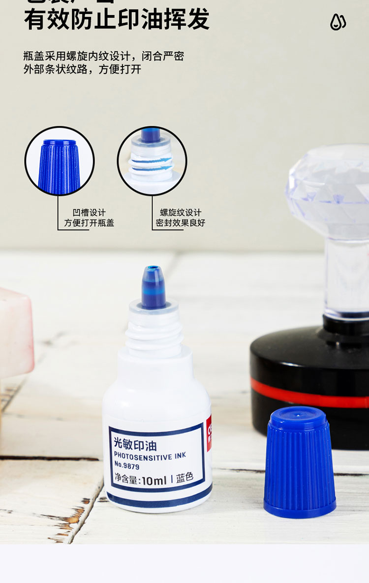 得力9879光敏印油10ml藍(lán)*20