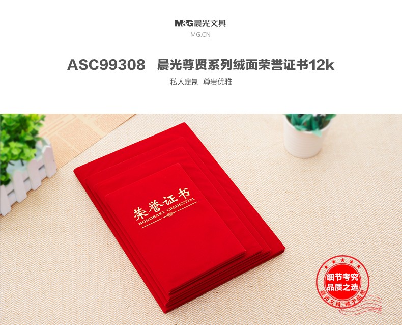 晨光尊賢絨面榮譽(yù)證書12K ASC99308