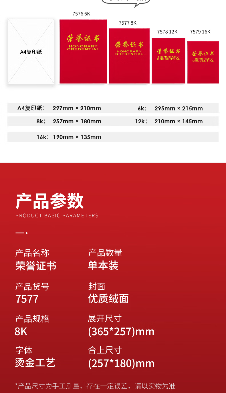 得力7577榮譽證書(榮光)(紅)-8K