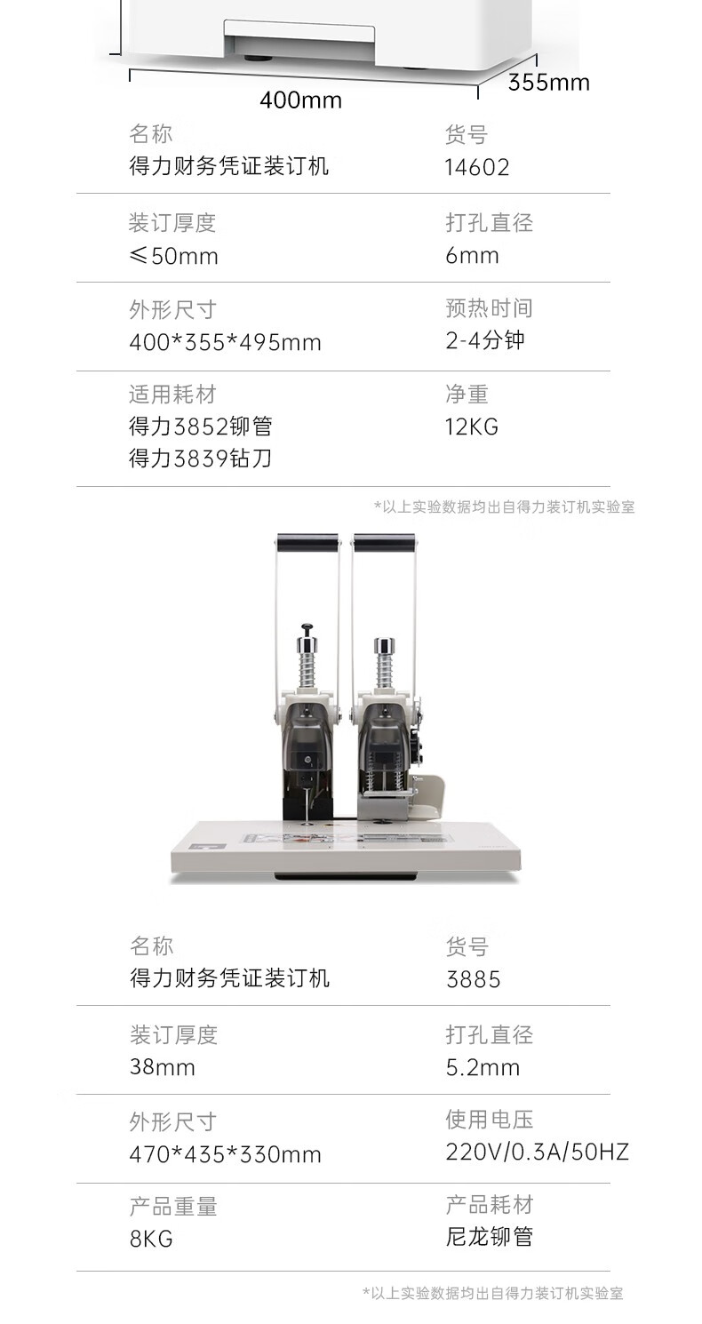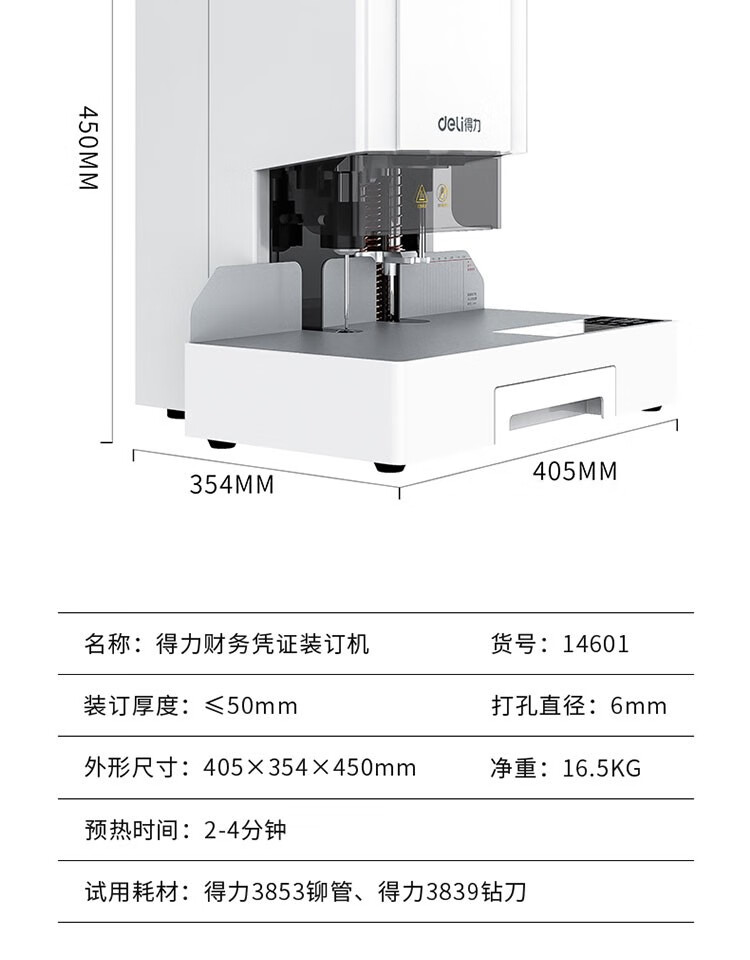 得力14601自動財務裝訂機(白)