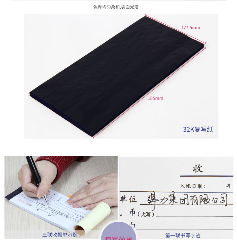 得力9373薄型復寫紙(增值稅發票專用)(藍)-32K(100張/盒)