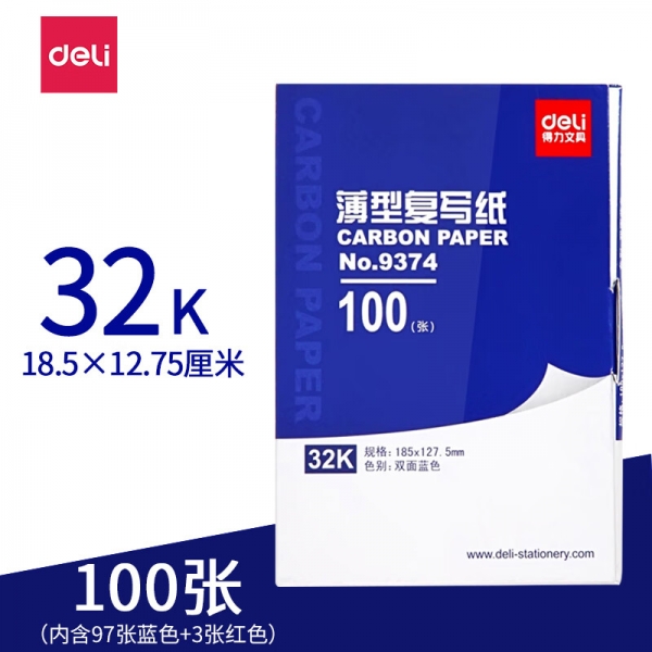 得力9374薄型復寫紙(藍)(12.7*18.5cm)-32K(100張/盒)